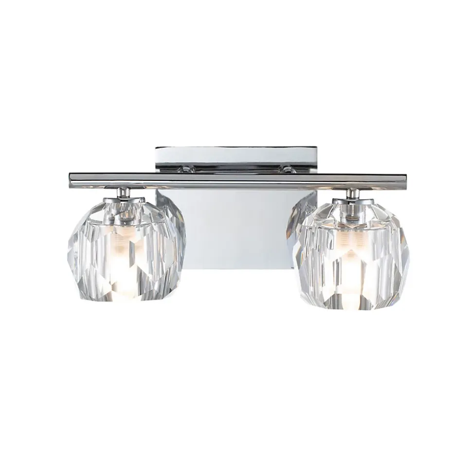 Elstead Quoizel Regalia Applique Chrome Poli, 3000K, IP44Finition : Chrome poliMatériau : acier, verre cristal K9Classement IP : IP44Hauteur : 15,2 cmLargeur : 33,4 cmProfondeur : 16,6 cmType de lampe : G9Nombre de lampes : 2Ampoule incluse : OuiKelvin : 3 000 kLumen : 600LmPuissance (max): 3W