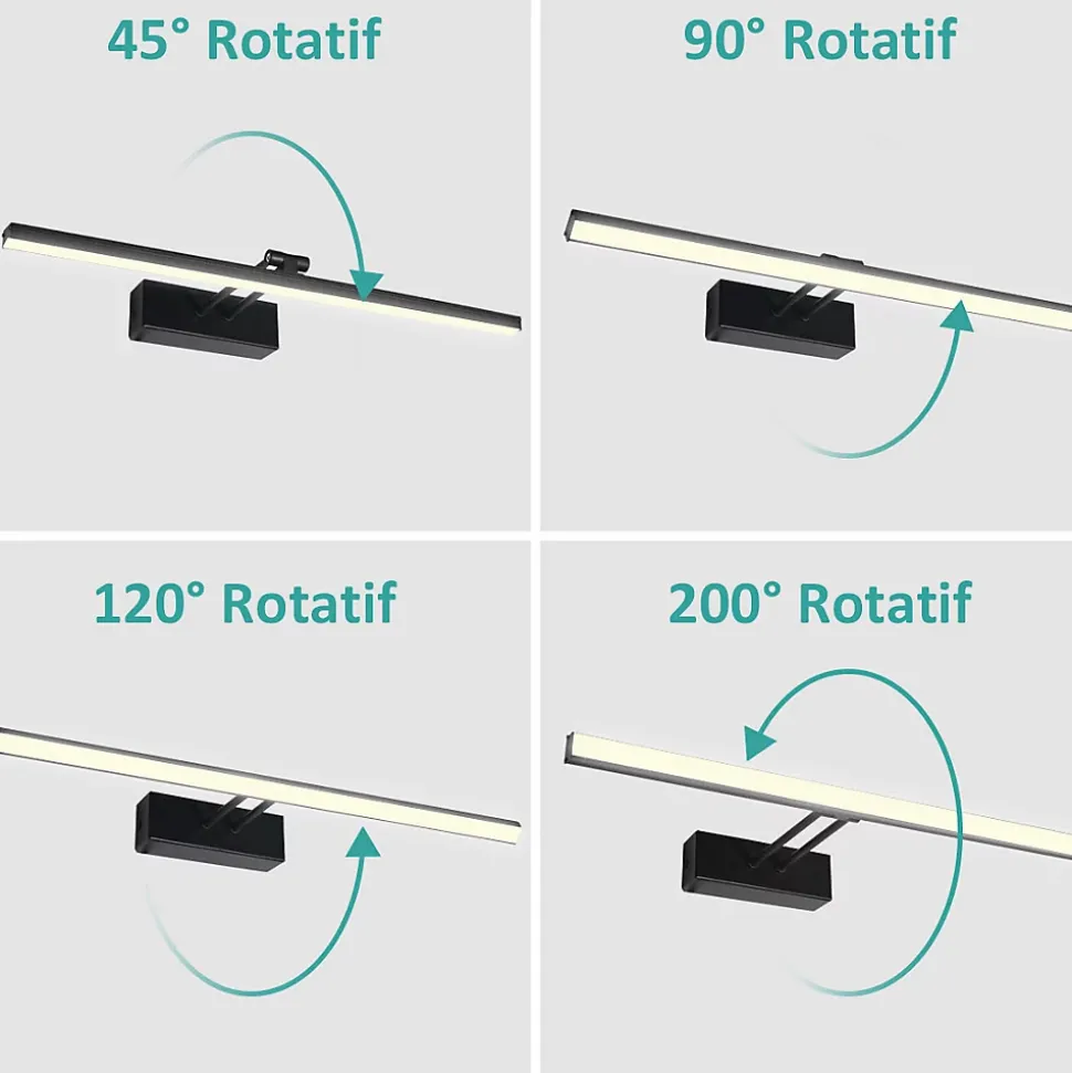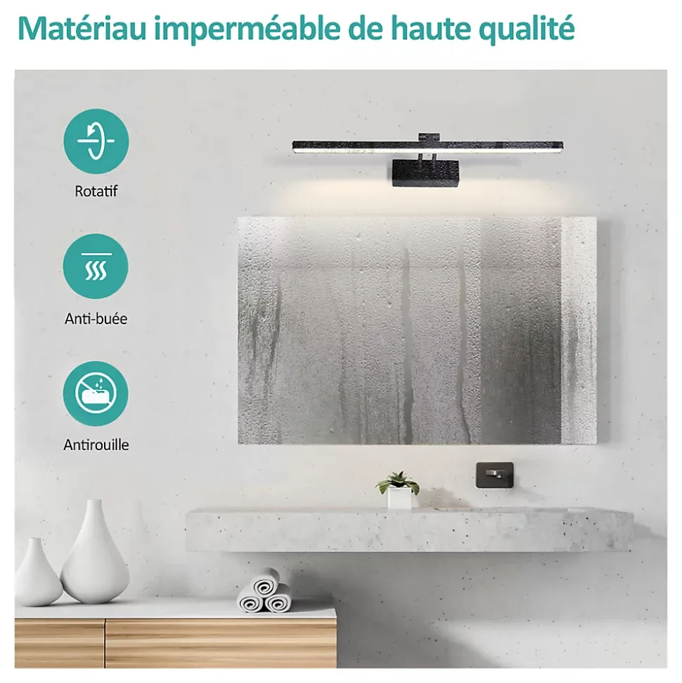 Découvrez la lampe miroir LED EMKE, conçue pour allier praticité et style, idéale pour illuminer votre salle de bain ou votre cuisine tout en apportant un éclairage flexible et efficace.Rotation 200° : Cette lampe miroir LED est spécialement conçue pour permettre une rotation de 200°. Vous pouvez ajuster la direction de la lumière selon vos besoins.Haute qualité : Résistante à la condensation, elle offre une lumière claire et pénétrante même dans les environnements humides comme les salles de bain.Commande pratique : La lampe miroir se connecte directement au câble et peut être contrôlée via un interrupteur mural (remarque : lampe fournie sans interrupteur), 8 W | 4200 K, elle peut également servir d’éclairage d’appoint.Économique en énergie : La lampe miroir consomme 80 % moins d’énergie qu’une ampoule classique. Son style simple s’adapte à différents types de décoration.Fiable : Nous vous offrons un service de qualité pour garantir une expérience d’achat sans souci. En cas de problème, contactez-nous à tout moment pour une assistance après-vente.