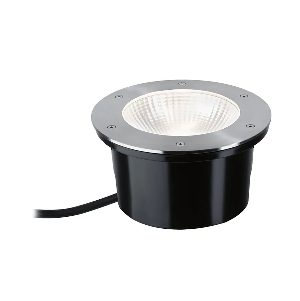 Que ce soit pour une façade, un accès ou l’allée vers la maison, le spot LED encastré dans le sol Durea avec son diamètre de 213 mm illumine surement l’espace extérieur souhaité. Grâce à une charge supportée élevée de 2000 kg, cet encastré de sol convient parfaitement pour les espaces extérieurs praticables. Inoxydables, hydrofuges et protégés contre la poussière, ils diffusent une lumière blanc chaud quelles que soient les conditions météorologiques.Le module LED intégré peut être remplacé à volonté par un spécialiste. Grâce au raccordement sans outils par les clips de fixation rapides des spots encastrés dans le sol, il est rapide et facile de monter plusieurs projecteurs à la suite. L’avantage est de ne pas devoir brancher chaque lampe de sol individuellement. Une gaine d’encastrement est fournie.