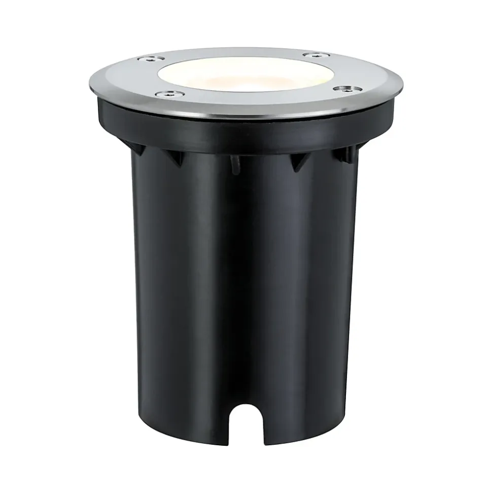 Ces spots de sol encastrés ronds supportent une charge allant jusqu’à 500 kilos – ils conviennent par conséquent pour des lieux extérieurs praticables. Inoxydables, hydrofuges et protégés contre la poussière, ils diffusent une lumière blanc chaud quelles que soient les conditions météorologiques. Le luminaire fourni peut être remplacé à votre guise.