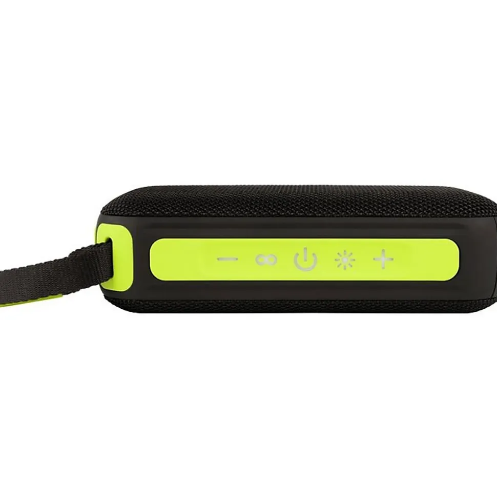 Caractéristiques du produit30W de puissance pour un son puissant et clairBluetooth 5.3 pour une connexion sans fil stableBatterie 2400 mAh avec recharge USB-C pour une utilisation nomadeLecture via AUX, USB et Micro SD + fonction TWS pour stéréoÉclairage LED intégré synchronisé au rythme de la musiqueDesign compact avec poignée en tissu et panneaux en caoutchouc/plastiquePerformance sonoreEnceinte 2.0 avec radiateurs passifs visibles offrant des basses profondes et une restitution nette des voix et instruments.Connectivité et lecteursStreaming sans fil via Bluetooth 5.3, lecture locale via prise Aux-In, port USB (lecteur MP3) et lecteur Micro SD. Fonction TWS pour associer deux enceintes et obtenir un son stéréo.Autonomie et rechargeBatterie rechargeable 2400 mAh, recharge via câble USB-C inclus. Recharge rapide et rubrique de charge adaptée aux usages nomades.Design et utilisationFormat rectangulaire compact (19 x 10 x 5,5 cm) et poids léger (0,64 kg) pour un transport facile. Bande de contrôle en haut en caoutchouc avec icônes pour marche, éclairage et volume, et sangle en tissu avec accent jaune pour un port confortable.Sécurité et précautionsNe pas exposer à l’eau. Éclairage LED intégré : effet visuel adapté aux fêtes et aux ambiances animées.