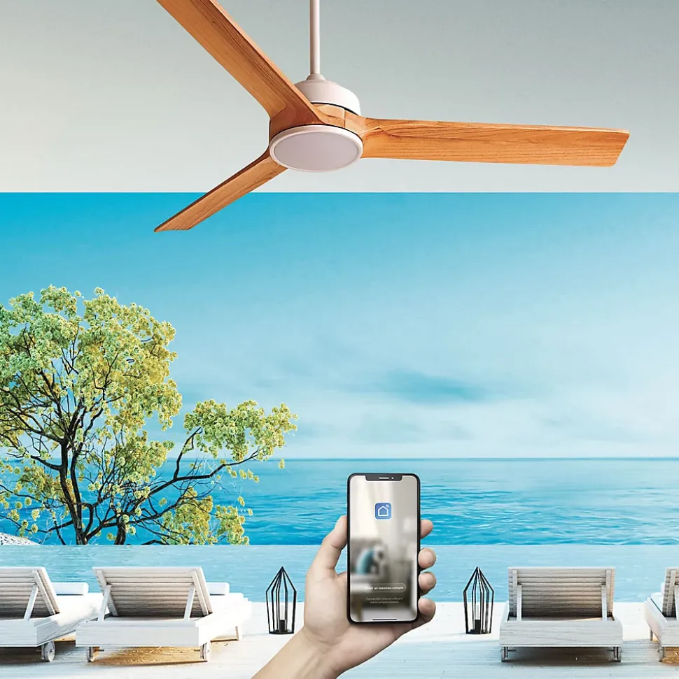 Moteur à courant continu, économique en énergie (5,8-35,6 W), très silencieux (27-45 dB)Très fort débit d’air : 8 930 m3/h6 vitesses de fonctionnementTélécommande avec support muralTélécommande programmable sur plusieurs ventilateursLumière LED 20W 3 couleurs dimmables (6000°K / 4000°K / 3000°K)Lumière LED 2W 3000°K (supérieure)Compatible Wifi (APP Smart Life)Compatible contrôles vocaux (Amazon Alexa et Google Home)Fonction mémoire Marche/Arrêt (gestion par interrupteur…)Fonction minuterie (8h max)Mode été/hiver (inversion du sens de rotation des pales)3 pales boisTubes 13 et 25 cm (rallonges 90 ou 120 cm en option pour plafond haut)Installation sur plafond incliné jusqu’à 20°Connecteurs de fils, connexions simplifiées, installation facileIdéal pour maison, bureau, magasin, hôtel, restaurant…ModèleBALABIOTension100-240V~Fréquence50/60 HzMoteurDC courant continuDiamètre132 cmNombre de vitesses6Consommation5.8 W (vit. 1) – 35.6 W (vit. 6)Dimensions emballage65.5 x 24 x 35 cmPoids brut8.00 kgPoids net7.00 kgEclairage 20W LED dimmable 3 couleursLumens2000 lm (6000°K) / 1900 lm (4000°K) / 1820 lm (3000°K)Mode Reverse OuiDébit d’air 4 500 m3/h (vit. 1) – 8 930 m3/h (vit. 6)Efficacité énergétique 776 m3/h.W (vit. 1) – 251 m3/h.W (vit. 6)Niveau sonore 27 dB (vit. 1) – 45 dB (vit. 6)Rotation 90 tr/min (vit. 1) – 179 tr/min (vit. 6)