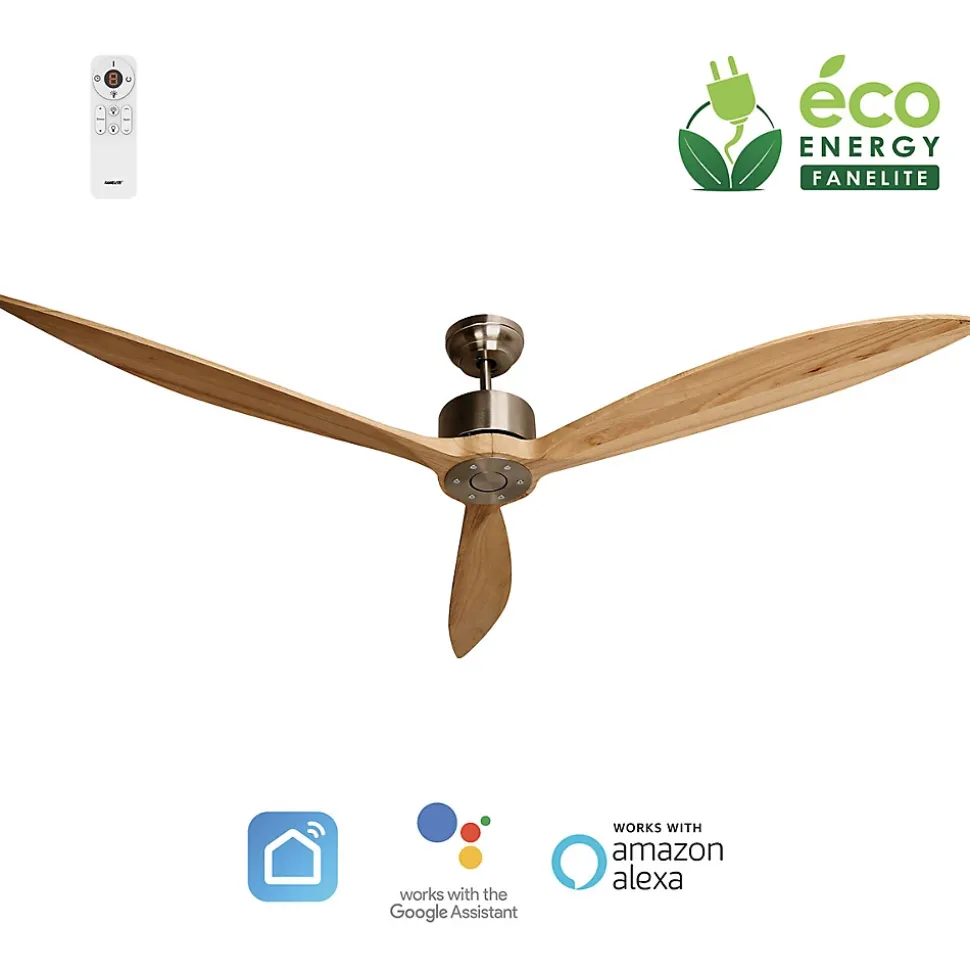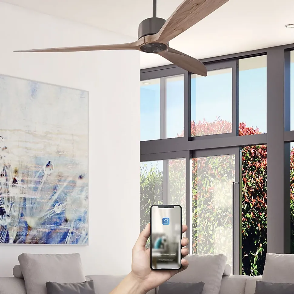 BRASSEUR D’AIR 164 CM NEBAMoteur à courant continu, très économique en énergie, très silencieuxTrès fort débit d’air6 vitesses de fonctionnementTélécommande avec support muralTélécommande programmable sur plusieurs ventilateursCompatible Wifi (APP Smart Life)Compatible contrôles vocaux (Amazon Alexa et Google Home)Fonction mémoire Marche/Arrêt (gestion par interrupteur…)Fonction minuterie (8h max)Mode été/hiver (inversion du sens de rotation des pales)3 pales boisTubes 13 et 25 cm (rallonges 90 ou 120 cm en option pour plafond haut)Installation sur plafond incliné jusqu’à 25°Connecteurs de fils, connexions simplifiées, installation facileIdéal pour maison, bureau, magasin, hôtel, restaurant…Tension100-240 V~Fréquence50/60 HzMoteurDC courant continuDiamètre164 cmNombre de vitesses6Consommation6,5 W (vit. 1) – 38 W (vit. 6)Eclairage LEDAucunLumensAucunRotation84 tr/min (vit. 1) – 167 tr/min (vit. 6)Niveau sonore27 dB (vit. 1) – 45 dB (vit. 6)Débit d’air5 580 m3/h (vit. 1) – 12 409 m3/h (vit. 6)Efficacité énergétique859 m3/h.W (vit. 1) – 327 m3/h.W (vit. 6)Pales et inclinaison3 pales bois – 11°Hauteurs avec tube 13 cmPlafond / Pales : 32 cm – Plafond / Point bas : 33 cmHauteurs avec tube 25 cmPlafond / Pales : 44 cm – Plafond / Point bas : 45 cm