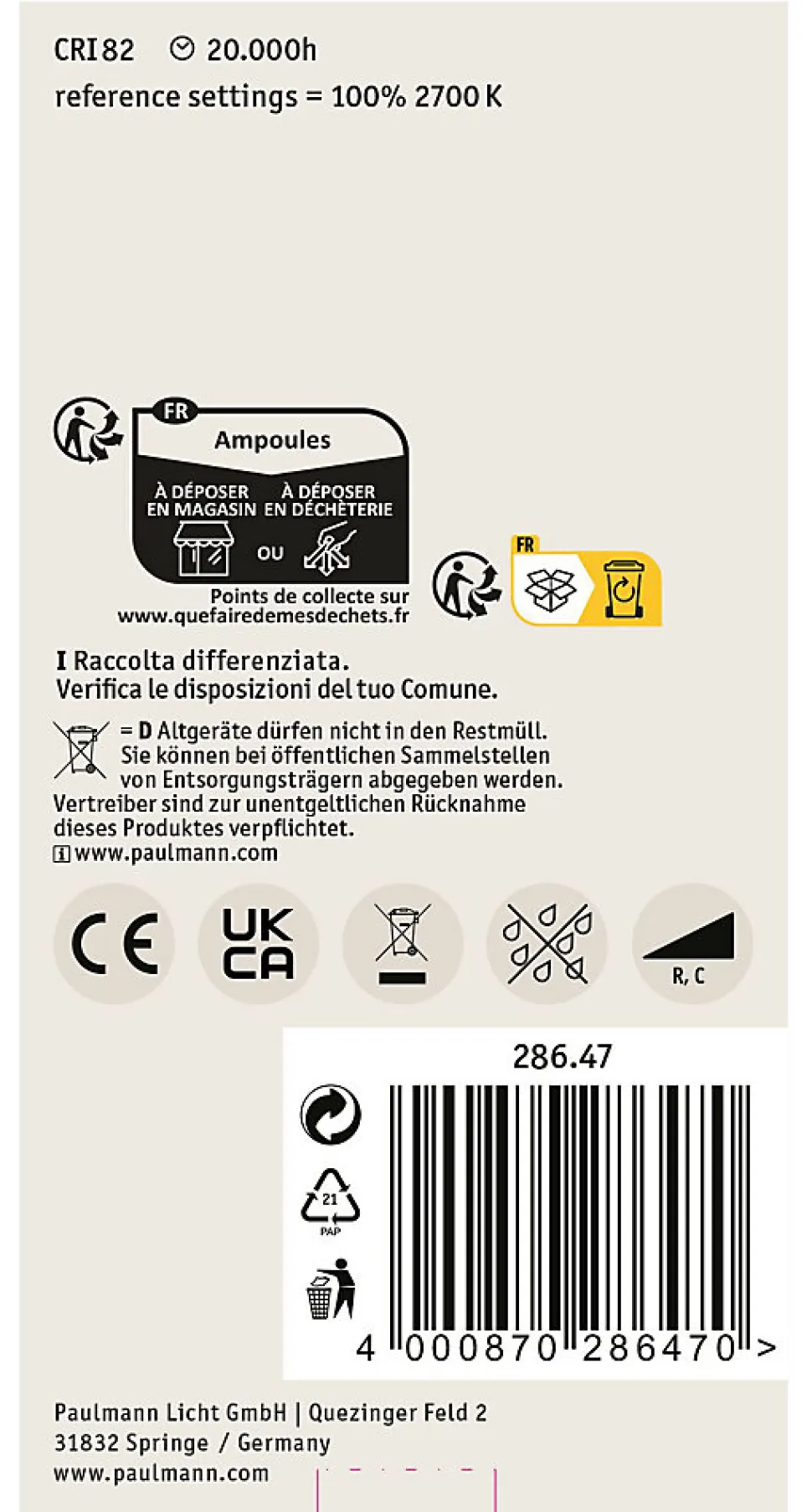 La lampe tous usages à filaments d’une puissance de 12,5 watts diffuse sa lumière dans toutes les directions. Éclaire de façon uniforme même les plus grands abat-jour. Elle a une température de couleur blanc chaud agréable et est compatible avec les douilles E27 conventionnelles. Les lampes LED Paulmann portant le label Eye friendly produisent une lumière confortable qui préserve les yeux. Que ce soit pour travailler, lire ou se détendre, les lampes contribuent à un meilleur confort visuel.