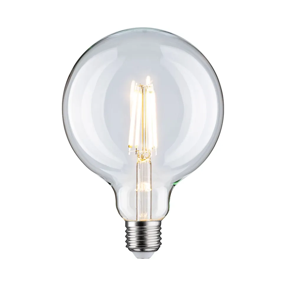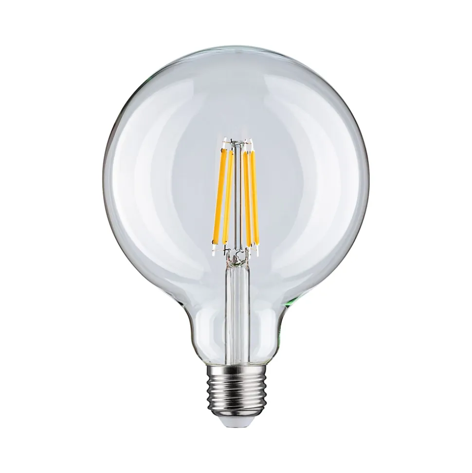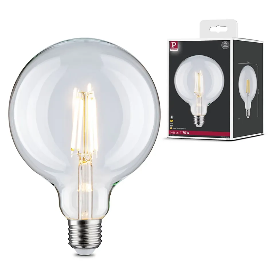 Le globe à filament LED clair tout en verre avec une 1055lm est à intensité variable et procure une lumière rayonnante dans les éclairages domestiques avec abat-jour ou verre teinté. Avec son culot E27, une température de couleur de 2700K et une puissance de 9W, cette ampoule est faite pour être utilisée comme éclairage principal dans les salons. Les lampes LED Paulmann portant le label Eye friendly produisent une lumière confortable qui préserve les yeux. Que ce soit pour travailler, lire ou se détendre, les lampes contribuent à un meilleur confort visuel.