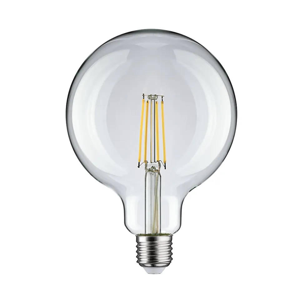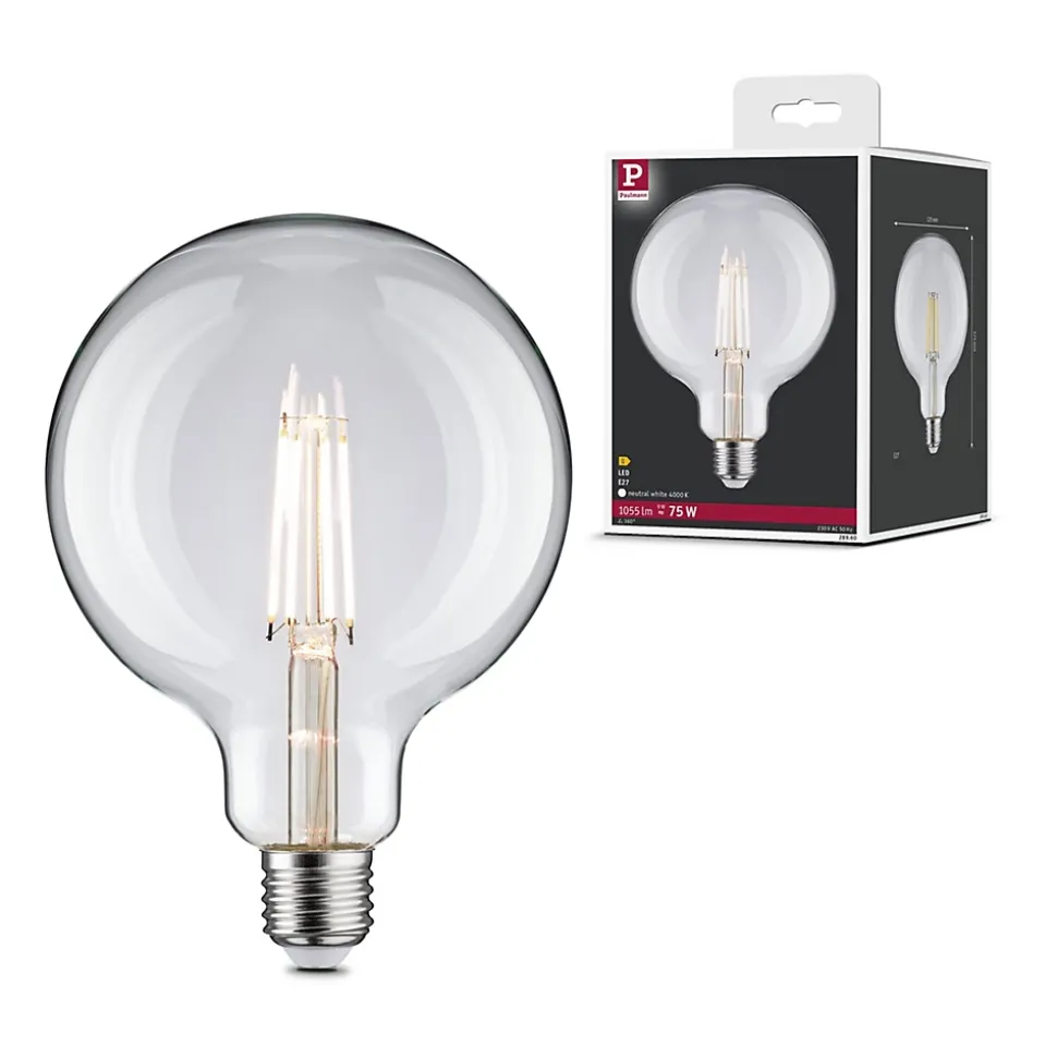 Le globe à filament LED clair tout en verre avec une 1055lm offre une lumière rayonnante dans les luminaires domestiques avec abat-jour ou verre teinté. Avec son culot E27, une température de couleur de 4000K et une puissance de 9W, cette ampoule est faite pour être utilisée comme éclairage principal dans les salons. Les lampes LED Paulmann portant le label Eye friendly produisent une lumière confortable qui préserve les yeux. Que ce soit pour travailler, lire ou se détendre, les lampes contribuent à un meilleur confort visuel.