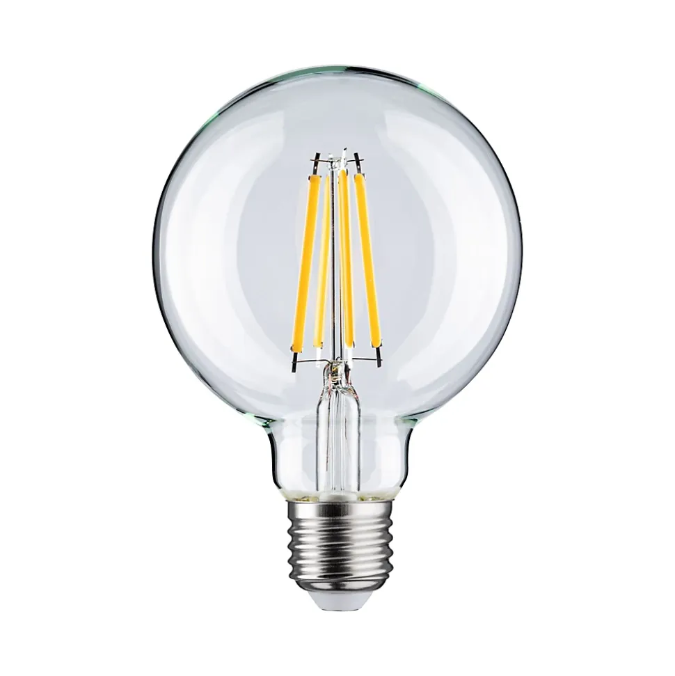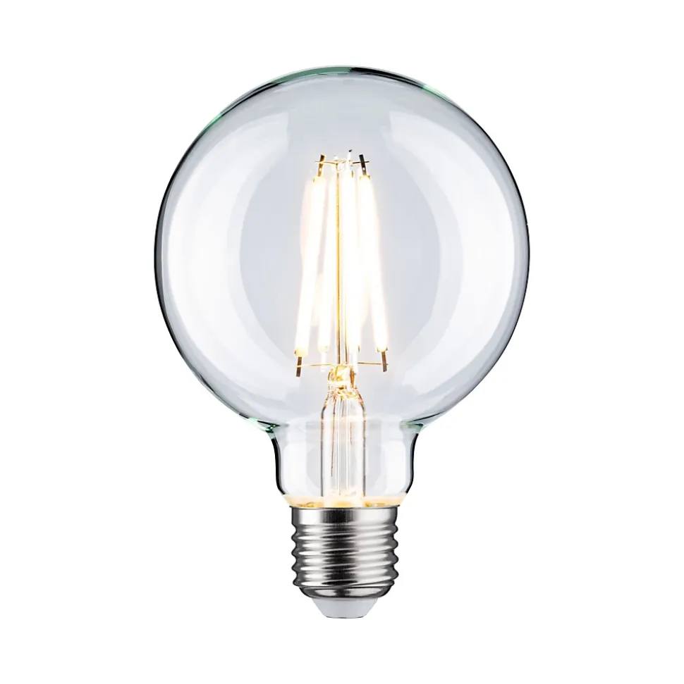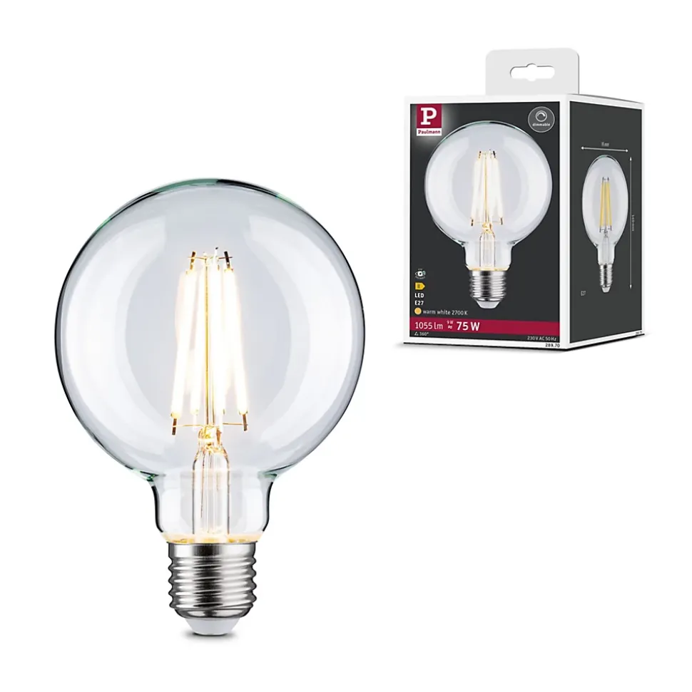 Le globe à filament LED clair tout en verre avec une 1055lm est à intensité variable et procure une lumière rayonnante dans les éclairages domestiques avec abat-jour ou verre teinté. Avec son culot E27, une température de couleur de 2700K et une puissance de 9W, cette ampoule est faite pour être utilisée comme éclairage principal dans les salons. Les lampes LED Paulmann portant le label Eye friendly produisent une lumière confortable qui préserve les yeux. Que ce soit pour travailler, lire ou se détendre, les lampes contribuent à un meilleur confort visuel.