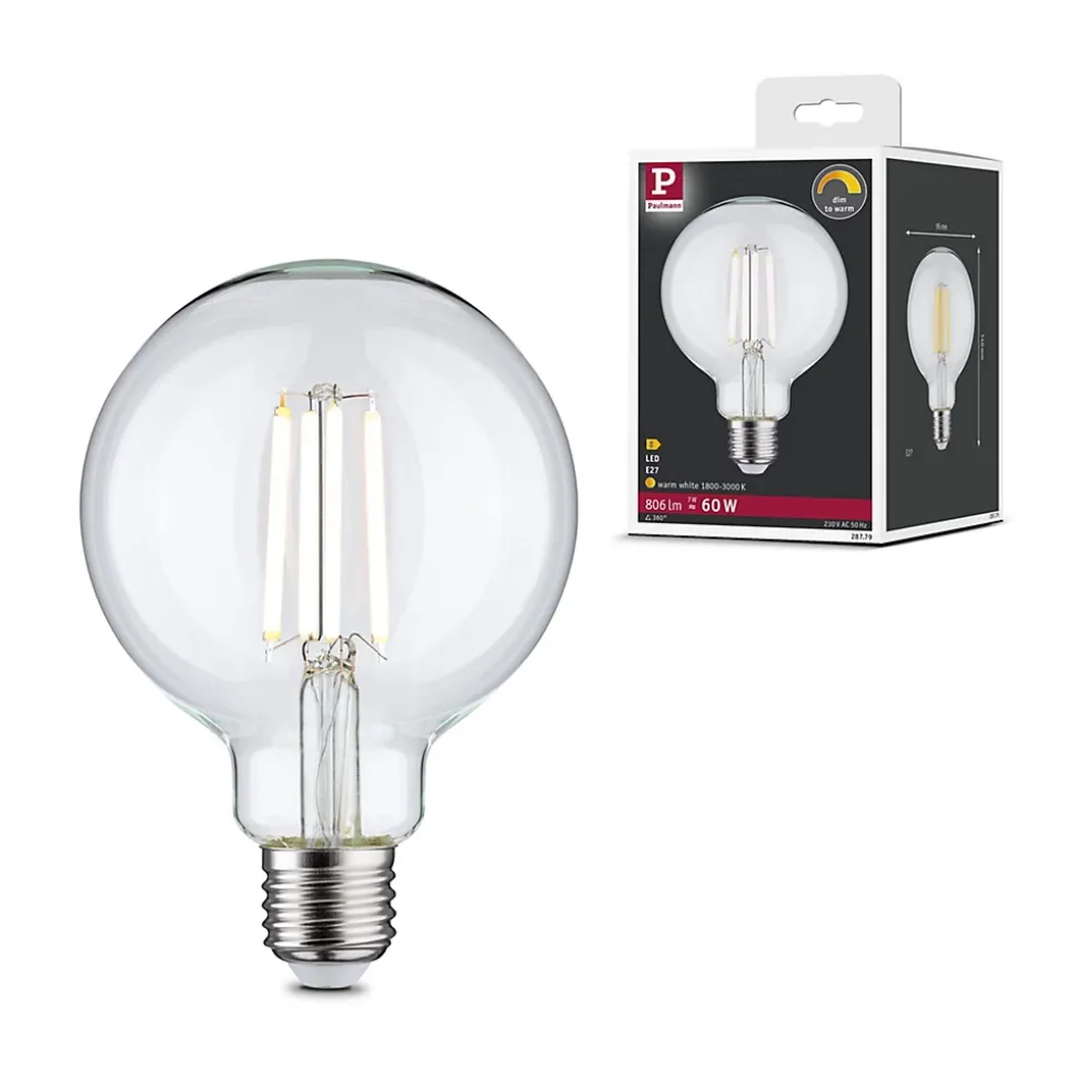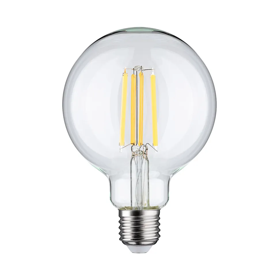 Le globe à filament d’une puissance de 7 watts diffuse sa lumière dans toutes les directions. Avec un variateur mural conventionnel, la température de couleur peut être réglée entre 1 800 et 3 000 Kelvin. Il est ainsi possible de varier entre une agréable lumière dorée et un éclairage blanc lumière du jour au gré de ses envies. Les lampes LED Paulmann portant le label Eye friendly produisent une lumière confortable qui préserve les yeux. Que ce soit pour travailler, lire ou se détendre, les lampes contribuent à un meilleur confort visuel.