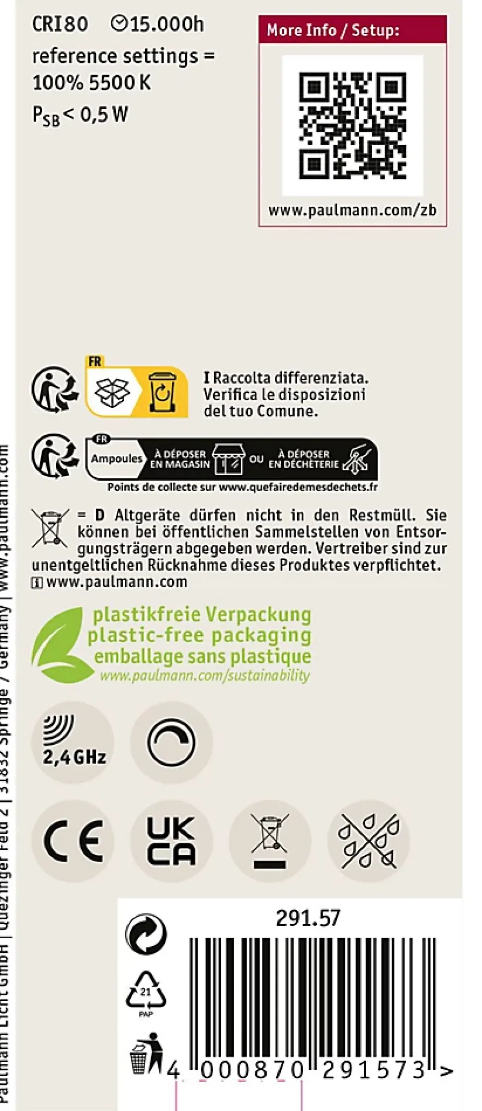 L’ampoule cylindrique à filament avec Tunable White et une puissance de 7,5 watts et 600lm diffuse un éclairage uniforme agréable. L’ampoule est compatible avec les douilles E27 conventionnelles. L’ampoule est compatible Zigbee 3.0 3.0. ZigBee est un protocole de transmission radio qui met en réseau les appareils de différents fabricants. La fonction Tunable White permet de varier la température de couleur à votre guise : du blanc lumière du jour pour le travail au blanc chaud idéal pour la relaxation. Les ampoules cylindriques sont idéales pour les appliques et plafonniers. Les lampes LED Paulmann portant le label Eye friendly produisent une lumière confortable qui préserve les yeux. Que ce soit pour travailler, lire ou se détendre, les lampes contribuent à un meilleur confort visuel.