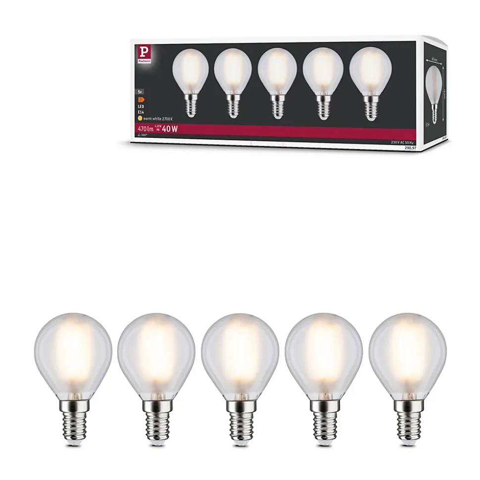 Les sphériques dépolies à filament (lot de 5) avec 2700K, une puissance de 5×4,8W et 5x470lm diffusent une lumière blanc chaud. Les ampoules sont compatibles avec les douilles E14 conventionnelles. Grâce à leur forme compacte, les ampoules sphériques sont idéales pour les petits luminaires. Les lampes LED Paulmann portant le label Eye friendly produisent une lumière confortable qui préserve les yeux. Que ce soit pour travailler, lire ou se détendre, les lampes contribuent à un meilleur confort visuel.