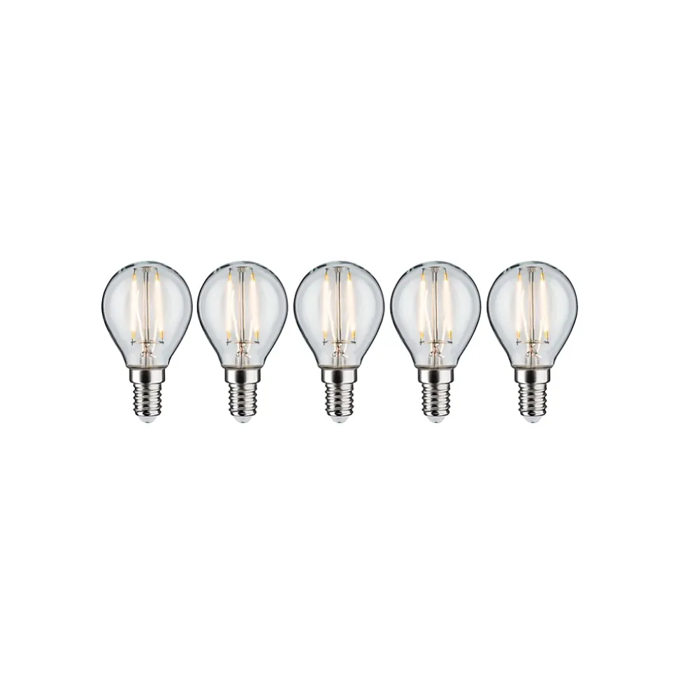 Le kit d’ampoules comprend 5 ampoules sphériques à filament, gradables. Les ampoules à filament diffusent la lumière dans toutes les directions. Éclaire de façon uniforme même les plus grands abat-jour. Elles ont une température de couleur blanc chaud agréable.
