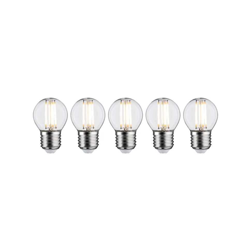 Le kit d’ampoules comprend 5 ampoules sphériques à filament. Les ampoules à filament diffusent la lumière dans toutes les directions. Éclaire de façon uniforme même les plus grands abat-jour. Elles ont une température de couleur blanc chaud agréable.