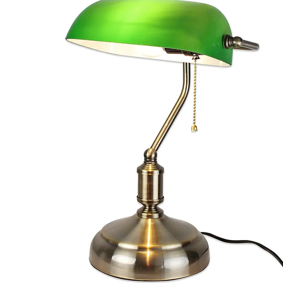 DESIGN VINTAGE ÉLÉGANT – Cette lampe de banquier verte au style vintage des années 20 apporte charme et authenticité à votre intérieur. Parfaite pour salon, chambre, bureau, bibliothèque, mais aussi pour bar, café, studio ou loft, elle crée une ambiance rétro chaleureuse et distinguée.ABAT-JOUR ORIENTABLE – Son abat-jour en verre opaline vert est inclinable pour diriger la lumière exactement là où vous en avez besoin. Idéale comme lampe de lecture, lampe de bureau ou lampe de chevet, elle allie confort visuel et élégance.ALLUMAGE PAR CHAÎNETTE – Système d’allumage authentique à chaînette, typique des lampes de notaire ou d’avocat. Pied feutré intégré pour protéger vos meubles et éviter les rayures, alliant style et praticité.COMPATIBILITÉ E27 – Fonctionne avec toutes les ampoules LED ou standard E27 (non incluses) jusqu’à 60W max, pour un éclairage puissant et adaptable à vos besoins.CARACTÉRISTIQUES – Dimensions : 38 x 26,5 cm. Base en cuivre / laiton brossé, abat-jour en opaline verte. Pied en métal doré galvanoplastie, verre opaline. Garantie 2 ans, design rétro durable et élégant.