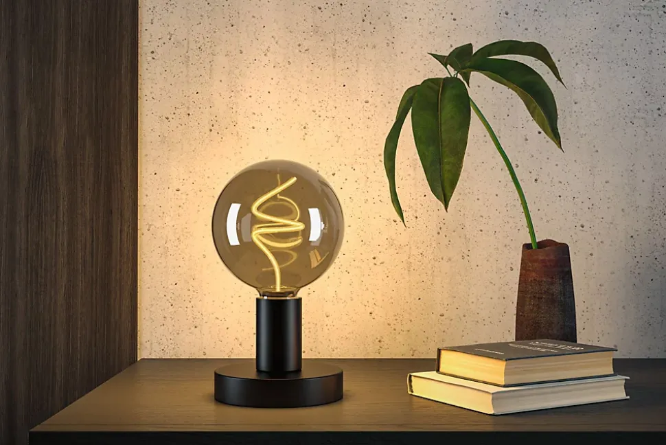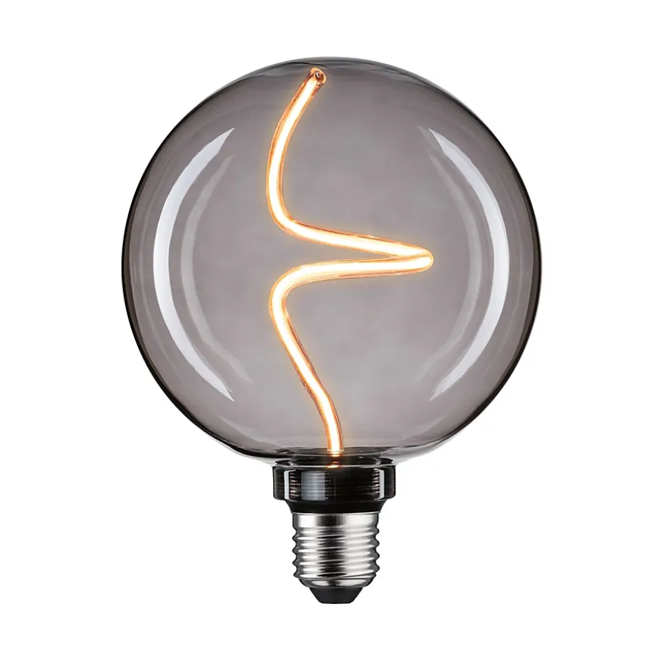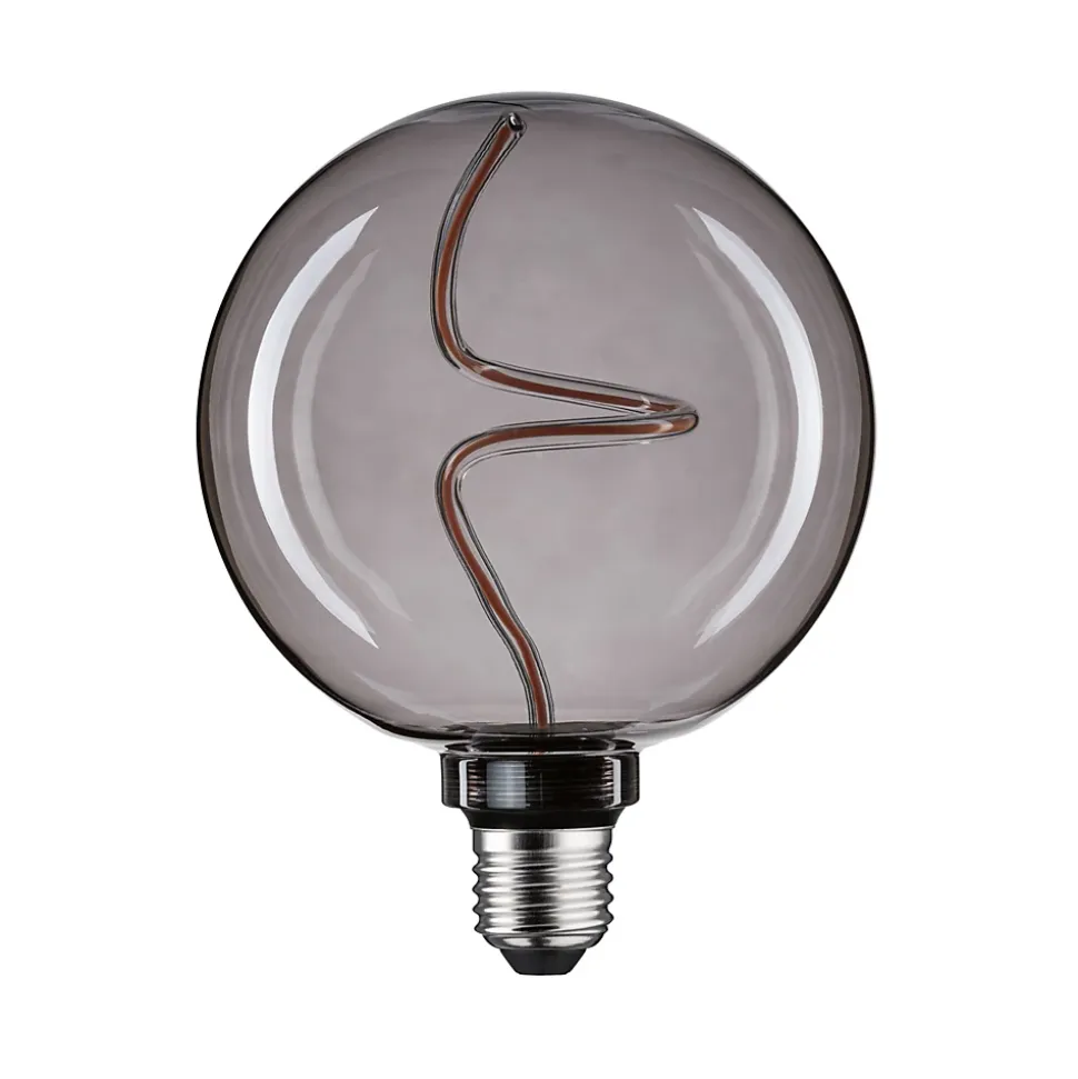 Globe LED en verre fumé avec filament fin dans un tube en verre torsadé|Luminosité réglable sur 3 niveaux|Grâce à la diffusion de la lumière à 360°, aucune ombre n’apparaît|Le design minimaliste s’intègre parfaitement dans les lampes de table, murales et suspendues|Apporte une touche décorative dans chaque pièce|Globe LED avec douille E27