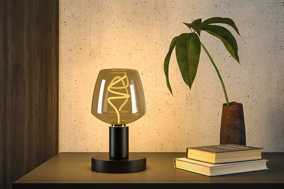Goblet LED en verre fumé avec filament fin dans un tube en verre torsadé|Luminosité réglable sur 3 niveaux|Grâce à la diffusion de la lumière à 360°, aucune ombre n’apparaît|Le design minimaliste s’intègre parfaitement dans les lampes de table, murales et suspendues|Apporte une touche décorative dans chaque pièce|Goblet LED avec douille E27