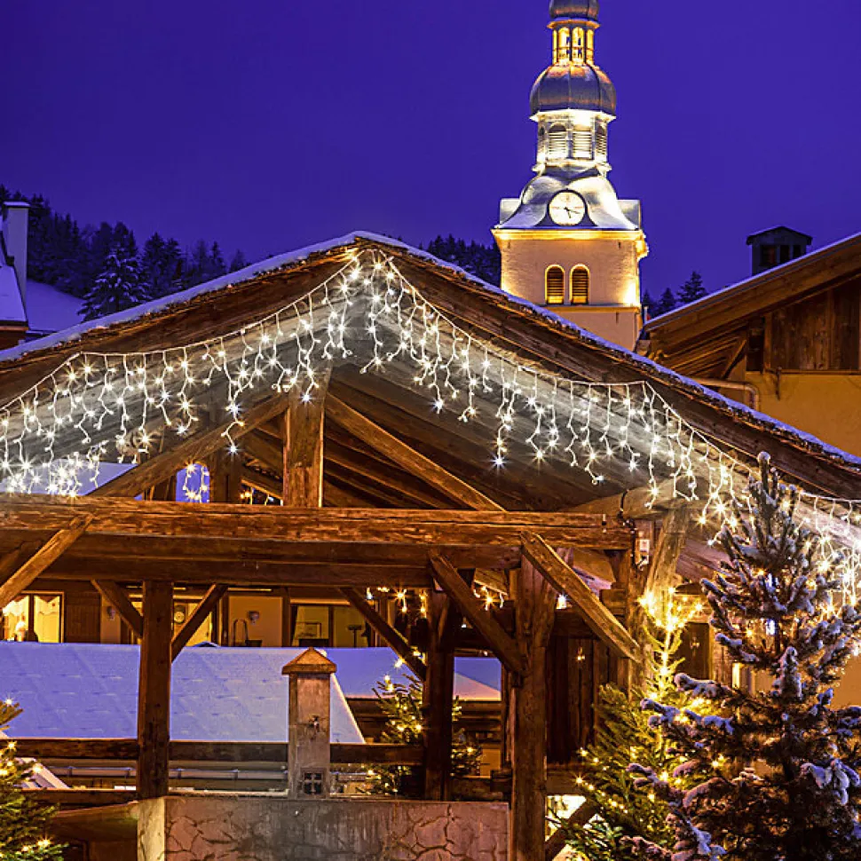 Faites briller vos fenêtres ou vitrines avec notre frise lumineuse de qualité professionnelle. 18 descentes pour illuminer vos intérieurs ou extérieurs.• Nb de LED : 100 LED• Couleur de LED : Blanc froid• Nb de descentes : 18• Couleur du câble : Blanc• Animation : Scintillante• Dimensions : L4 x H0,5m• Puissance : 7.5W• Tension : 230V• Lumens : 328 lumens• Alimentation : filaire, alimentation incluse.• Prolongeable : jusqu’à 100m maximum• Matière : produit en caoutchouc• Usage : Intérieur/Extérieur IP44• Qualité professionnelle• Garantie : 2 ansUsage & installation :De qualité professionnelle, cette frise peut être utilisée aussi bien à l’intérieur qu’à l’extérieur. L’indice IP 44, vous garantit une utilisation extérieure quelle que soit la météo tout au long de l’année.Données techniques & dimensions :Cette frise est composée de 18 descentes. Elle est prolongeable jusqu’à 100m maximum. Elle est vendue avec son câble d’alimentation. Elle est compatible avec nos connecteurs B Plug & Light 230V.Source lumineuse :Cette frise est composée de 100 LED scintillantes réparties sur 18 descentes. 20% des LED (soit 1/5) scintillent de manière aléatoire. Seules les LED blanches scintillent. Sa luminosité est de 328 lumens pour la frise blanche et 280 lumens pour la frise blanc chaud.