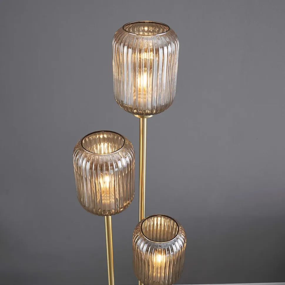 Ajoutez une touche de modernité à votre intérieur avec le grand lampadaire Rosalia, caractérisé par son design contemporain et ses trois abat-jour en verre ambré. Son fini doré apporte une note de luxe à votre décoration, tandis que les verres ambrés créent une ambiance chaleureuse et enveloppante. Équipé de 3 ampoules de culot E27, Rosalia offre un éclairage optimal pour illuminer votre espace avec élégance et raffinement.) Assemblage à faire par vos soins (