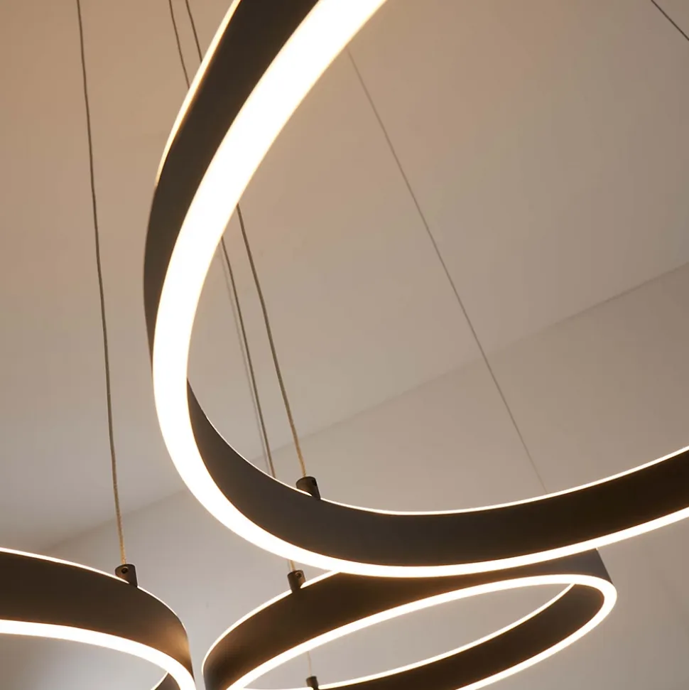 Laissez Blisko illuminer votre espace avec ses trois cercles lumineux LED intégrés (54W). Ce grand lustre émet une lumière envoûtante qui mettra en valeur chaque coin de la pièce. Son design moderne et audacieux en fait un élément central remarquable de votre décoration intérieure. Blisko est compatible avec un variateur de luminosité de plus il est possible de régler la hauteur des câbles.) Livré monté, prêt à installer (