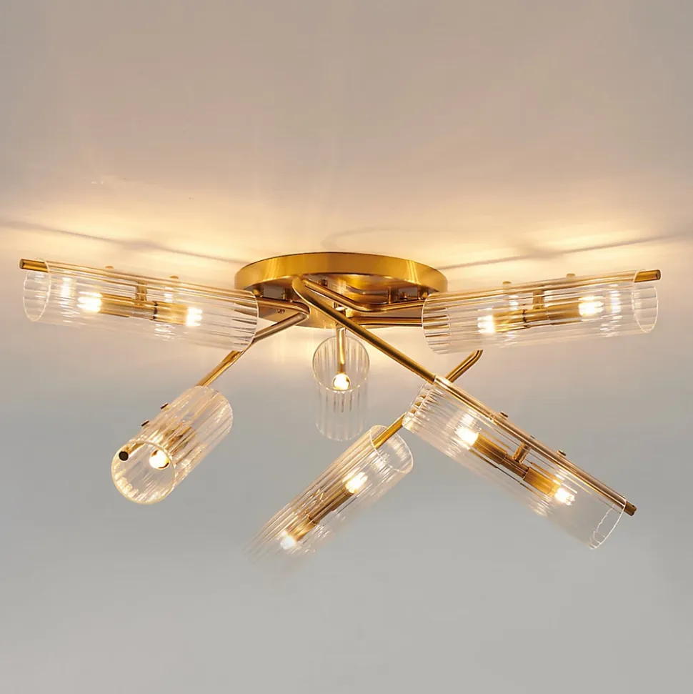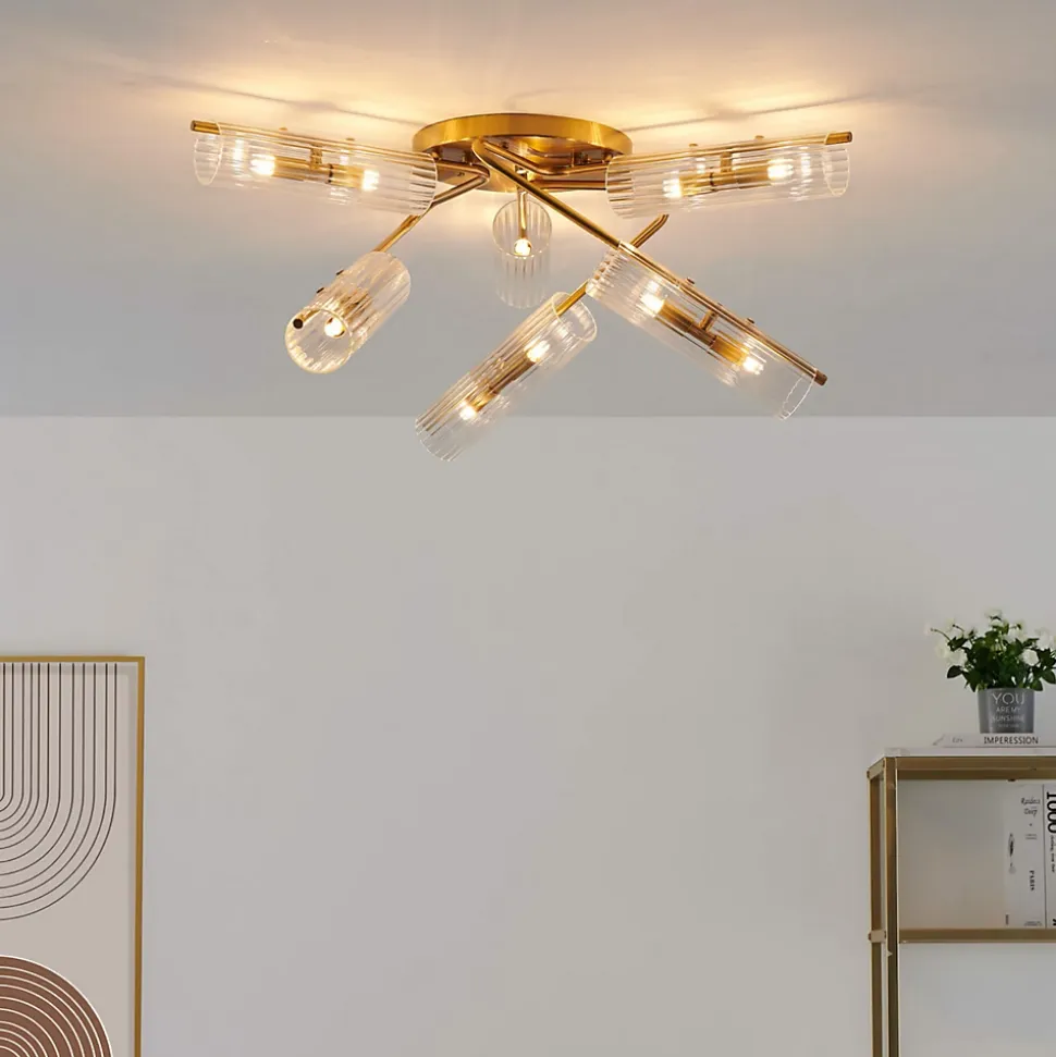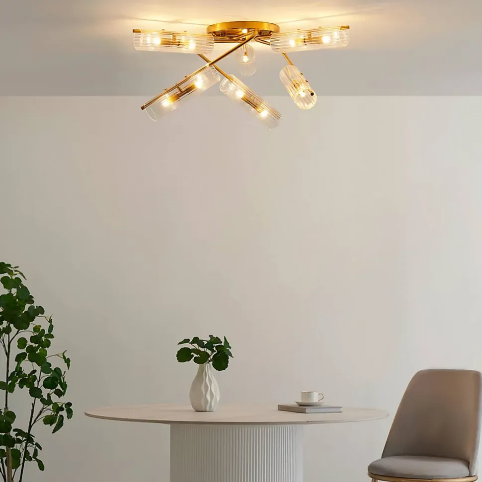 Ajoutez une touche de sophistication à votre intérieur avec le plafonnier Trento. Fabriqué avec du verre et du métal, ce plafonnier se compose de 6 bras en métal surmontés d’abat-jour en verre, chacun abritant 2 ampoules. Sa base ronde assure une fixation solide au plafond. Une fois équipé d’ampoules, ce luminaire offre un éclairage généreux, idéal pour illuminer une grande pièce. Son design unique et sa finition laiton lui confèrent un charme indéniable, faisant de Trento un véritable élément de décoration qui ne passera pas inaperçu dans votre espace.) Assemblage à faire par vos soins (