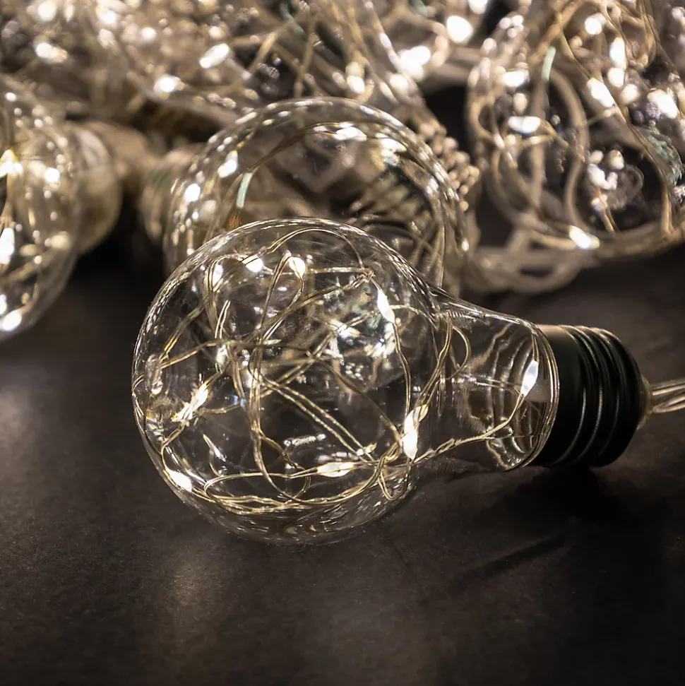 - Guirlande Lumineuse avec Ampoules laissant transparaitre des fils Micro Led de toute beauté. Créez une ambiance chaleureuse et cosy dans votre maison avec notre guirlande de 10 ampoules micro LED blanc chaud.