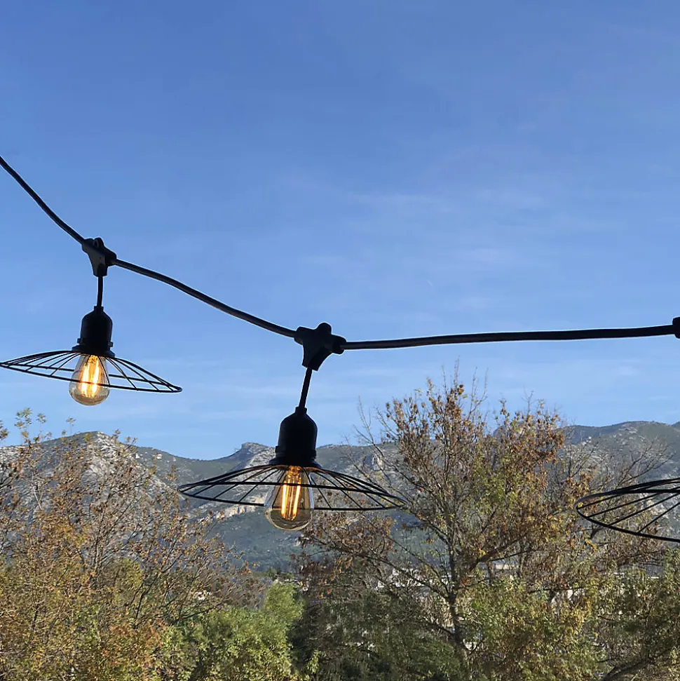 La guirlande extérieure Chic Cage est une solution d’éclairage au style retro et industriel se distinguant par ses 10 élégantes cages en acier. d’une longueur totale de 6 mètres, elle dispose de 10 douilles E27 avec crochets de suspension intégrés pour une installation simple et rapide. Ce modèle est livre sans ampoule, vous offrant la liberte de choisir votre type d’éclairage (LED maximum 25W par culot). Son design vintage et moderne s adapte parfaitement a la décoration de vos terrasses, jardins ou salons. Grace a sa protection IP44 contre les éclaboussures et sa résistance aux rayons UV, elle assure une utilisation durable en extérieur comme en intérieur. Pratique, cette guirlande est raccordable, permettant de connecter plusieurs unités pour couvrir de plus grandes surfaces. Avec un cable de 2 mètres avant la première douille et un espacement de 40 cm entre chaque cage, elle apporte une touche design et chaleureuse a tous vos espaces de vie avec une grande flexibilité.