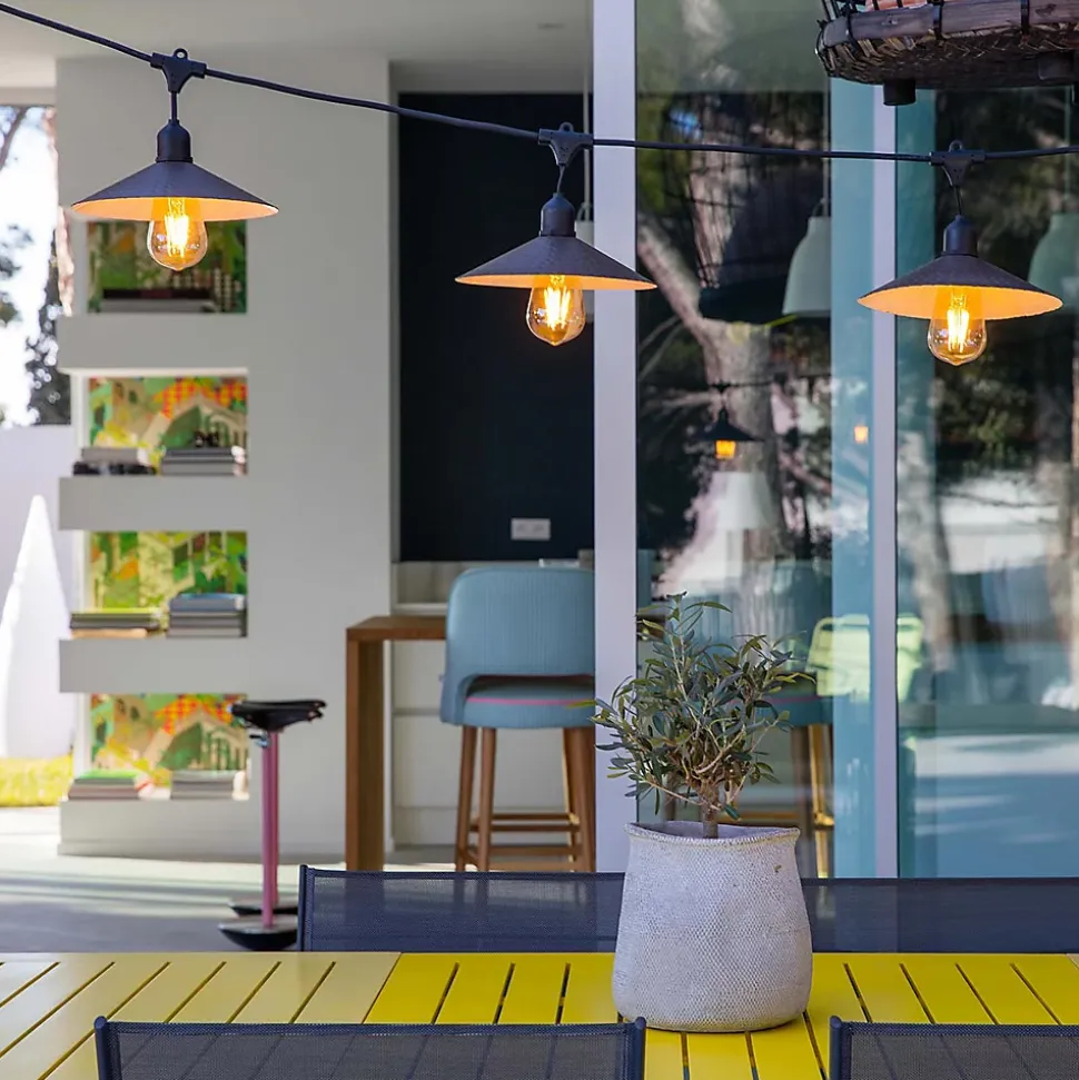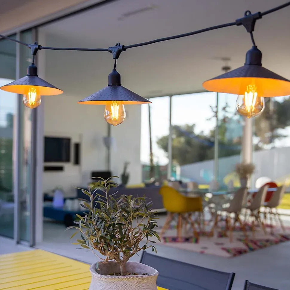 La guirlande Vinty Raccordable est une solution d’éclairage au style retro de 6 mètres, idéale pour créer une ambiance guinguette chic. Elle est equipee de 10 ampoules LED a filament blanc chaud interchangeables sur culot E27, diffusant une intensite puissante de 1000 Lumens. Son atout majeur est sa fonction raccordable, permettant de connecter plusieurs guirlandes sur une seule prise secteur 220V pour illuminer de grandes surfaces de maniere homogene. Concue pour un usage intérieur et extérieur, elle beneficie d’une protection IP64 contre les éclaboussures et d’une haute résistance aux UV, garantissant une durabilité optimale sur une terrasse ou dans un jardin. l’installation est simple grace a un espacement regulier entre les ampoules et un cable d’alimentation adapte. Que ce soit pour un mariage, un anniversaire ou la décoration quotidienne de votre espace de vie, ce modèle allie esthétique vintage et performance moderne pour un rendu élégant, chaleureux et securise.