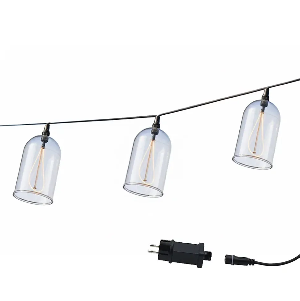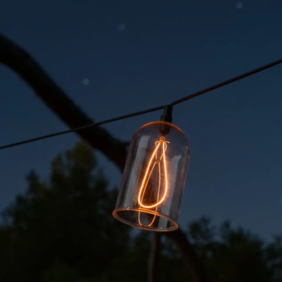 Le système Glow Light est une guirlande lumineuse sur secteur au design vintage-industriel dotée d’une longueur de 15 mètres. Elle se compose de 8 cloches en plastique transparent résistant qui protègent des ampoules LED a filament apparent. Sa lumière blanc chaud diffuse une puissance de 600 lumens, idéale pour créer une ambiance chaleureuse sur de grandes surfaces. Grace a son câble d’alimentation de 3 mètres et un espacement de 150 cm entre chaque cloche, elle offre une grande flexibilité pour des installations variées en hauteur ou en drape. Ce modèle est astucieusement raccordable, permettant de connecter jusqu’à 3 guirlandes pour atteindre une longueur totale de 45 mètres sur une seule prise 220-240 Volts. Parfaite pour les événements ou l’aménagement extérieur quotidien, cette guirlande combine esthétique retro et performance technique. Elle garantit une décoration lumineuse polyvalente et durable pour tous vos projets d’éclairage d’ambiance.