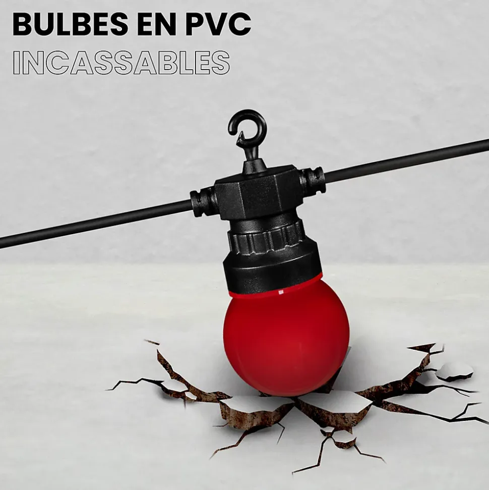 - ✅ ETANCHE IP44 ET SECURITE : Les ampoules de notre guirlande lumineuse exterieure guinguette sont étanches aux normes lumiere exterieure IP44. La distance entre les bulbes est de 1 mètre.