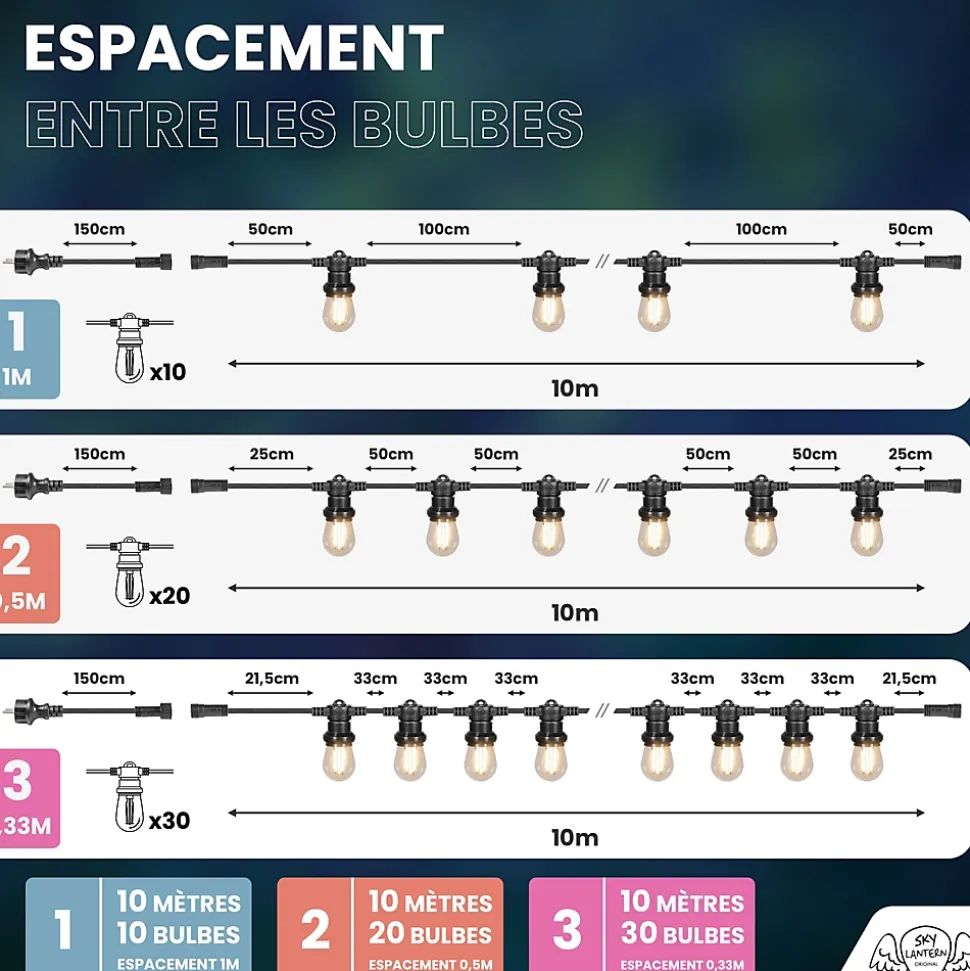 - INSTALLATION FACILE : La guirlande guinguette led filament s’installe rapidement et s’intègre parfaitement à chaque déco. Vous pouvez instantanément transformer votre espace en créant une atmosphère lumineuse envoûtante.