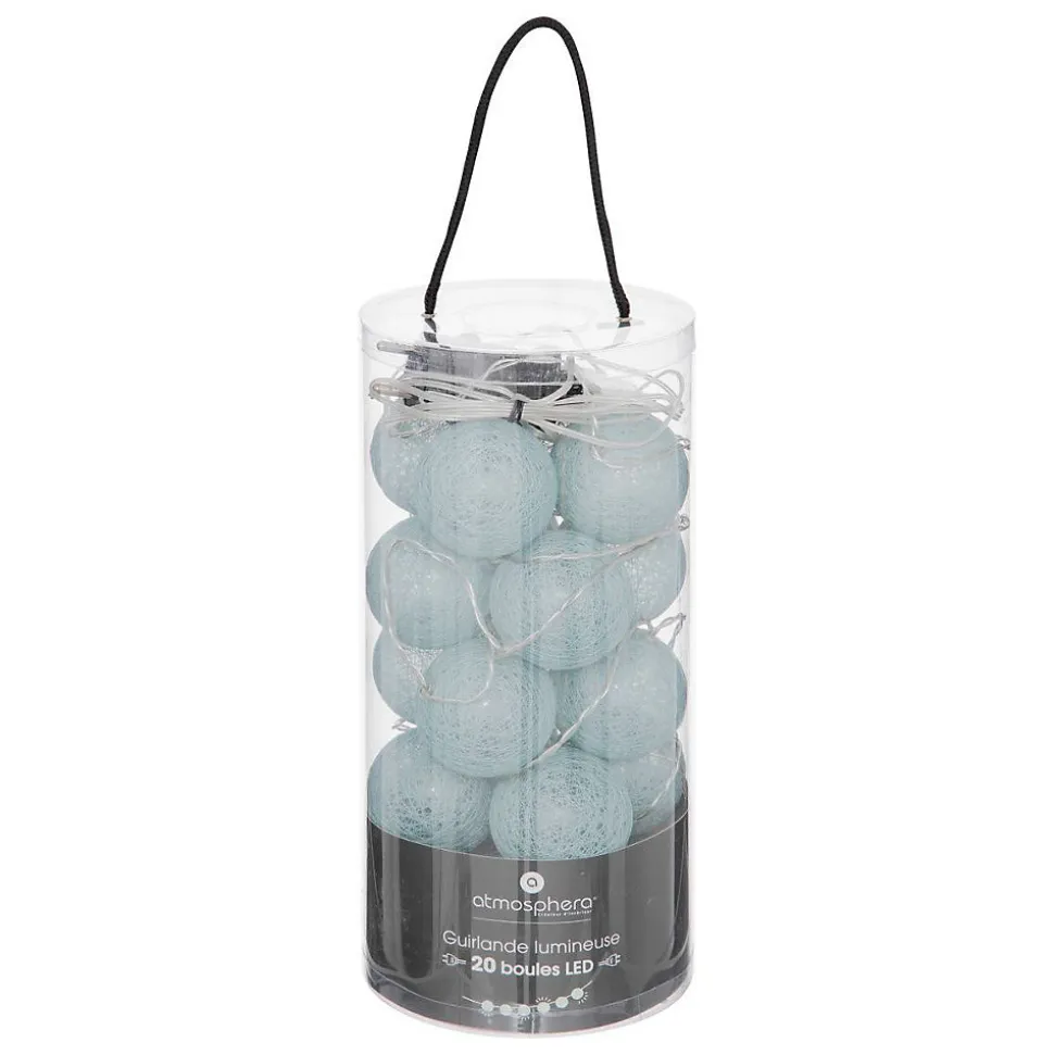 Pour un éclairage discret et original, optez pour la guirlande LED Atmosphera.Sobre et moderneCette guirlande compte 20 boules reliées entre elles contenant chacune une ampoule LED. En fonction de sa couleur, votre guirlande diffusera une lumière plus ou moins teintée mais toujours tamisée. Cet accessoire lumineux se branche sur secteur.Accrochez votre guirlande au-dessus de la tête d’un lit Atmosphera pour créer une ambiance cosy dans votre chambre.Le petit plus décoDonnez un esprit guinguette à votre salon en décorant votre bar avec plusieurs guirlandes à LED.