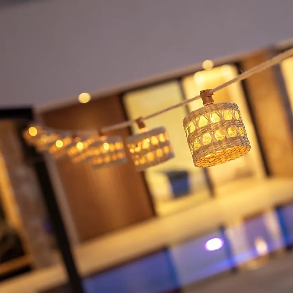 Les caractéristiques techniquesCette guirlande lumineuse étanche Alba de New Garden peut être installée aussi bien à l’intérieur qu’en extérieur grâce à son indice de protection (IP) 44 qui en garantit l’étanchéité. Elle bénéficie d’une double source d’alimentation : par batterie rechargeable sur secteur ou via un mini panneau solaire intégré ce qui en fait un élément décoratif très économique vous offrant jusqu’à 10 heures d’autonomie.La guirlande est aussi résistante au vent et au soleil.Cette guirlande mesure 8 mètres et est équipée de 10 ampoules transparentes culot E14.Les avantages esthétiques Donnez un air de fête à vos extérieurs avec cette guirlande lumineuse solaire.Elle est composée d’un cordon en jute et de 10 ampoules transparentes dans un abat-jour fibres naturelles du plus bel effet qui donnera à votre éclairage un aspect naturel.Elle égaiera aussi bien vos fêtes estivales dans une ambiance guinguette que votre buffet de mariage en belle saison.En hiver, elle contribuera à la magie des fêtes de fin d’année en parant votre façade ou vos arbres de jolies lumières.Pour la suspendre, pensez à la barre de table extensible garland lift ref MOBGLF250NXNW .
