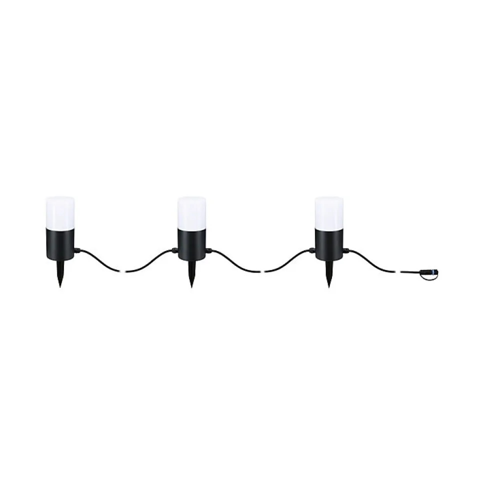 Une déco extérieure hyper flexible : la guirlande lumineuse LED Tubs Plug & Shine avec culot E14 est le complément parfait pour la décoration extérieure. Elle permet de créer d’agréables touches lumineuses blancs chauds à l’extérieur. Elle se laisse aisément installer sur des balustrades, des arbres et des plantes. Les trois lampes de la guirlande bénéficient de la protection IP44 contre les projections d’eau et peuvent donc s’utiliser à l’extérieur. Le câble reliants les luminaires fait 2 m de long. Elle peut être combinée avec tous les accessoires de la gamme Plug & Shine. La guirlande offre de multiples possibilités d’installation grâce au piquet fourni et aux crochets de plafond