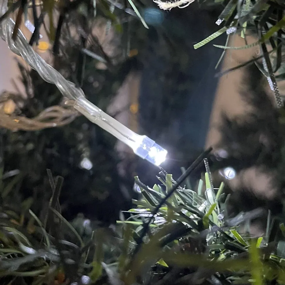 Le must-have de toutes vos festivitésApportez une touche magique à vos événements avec notre guirlande lumineuse. Idéale pour les mariages, elle crée un ciel étoilé inoubliable et illumine vos tables. Polyvalente, elle se décline en blanc froid, blanc chaud et multicolore pour s’adapter à toutes vos ambiances, en intérieur comme en extérieur.À Noël, elle devient un indispensable de la décoration de fête, dans le sapin comme en extérieur. Créez des moments uniques sous ses lumières scintillantes et profitez de ses multiples modes d’éclairage.Modes disponibles (8) : combinaison, vague, séquentiel, slo-glo, variable, lente, flash, continu. Un minuteur intégré permet l’extinction automatique, et la télécommande incluse offre un contrôle facile.Caractéristiques générales :600 Leds – longueur 72 mRaccordables jusqu’à 600 LedsRésistante à la pluie (IP44)Minuteur programmableTélécommande + pile CR2025 inclusesSécurité optimale – basse tension 31VCaractéristiques techniques :Couleur : blanc froidCâble transparentEspacement Leds : 10 cmDistance transfo / 1ère Led : 2 mPuissance : 3,6 WContenu du colis : 3x guirlandes LED 22 m raccordables