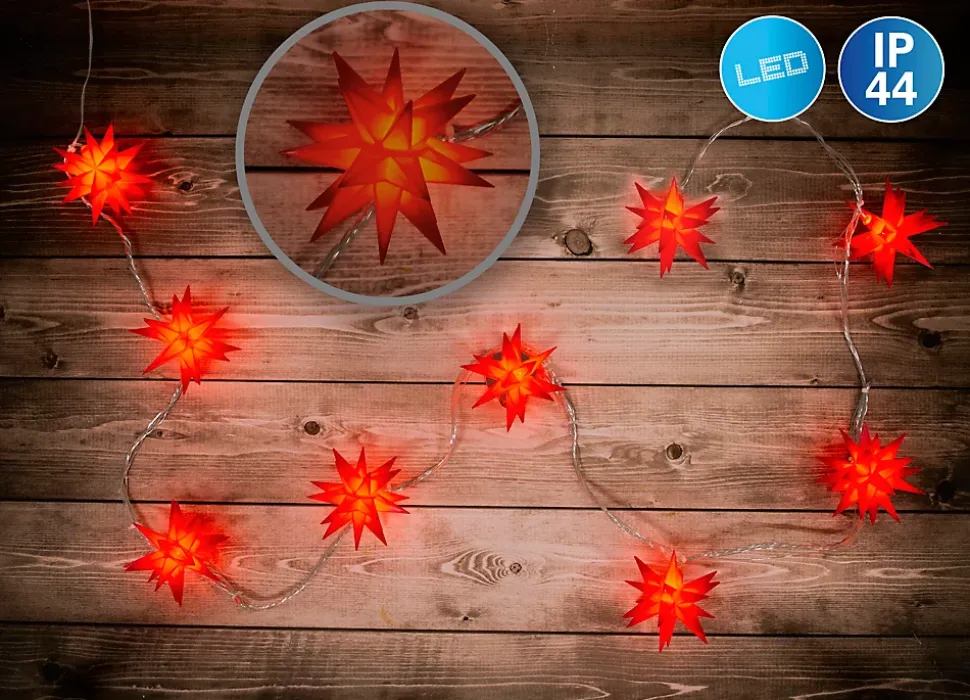 Guirlande lumineuse de Noël à 9 LED d’extérieur Étoiles 3D / XMAS Lights – rouge – Un design et une fonction uniques La guirlande lumineuse est un accessoire pratique pour illuminer vos pièces et vos environnements. Qu’il s’agisse d’une décoration de Noël ou d’une fête, elle permet de créer une atmosphère belle et agréable. Une guirlande lumineuse en plastique est la décoration idéale pour votre maison. Ces lumières vous permettent de créer une atmosphère unique et de donner une touche particulière à vos pièces. Les guirlandes lumineuses sont durables, robustes et faciles à monter. Cet article a des dimensions de 9 cm de large, 9 cm de long et 10,5 cm de haut. Cette guirlande lumineuse est équipée d’une technologie LED moderne et est donc à la fois efficace sur le plan énergétique et durable. Avec cette guirlande lumineuse, vous pouvez embellir aussi bien votre intérieur que votre extérieur. Cette chaîne est entièrement résistante aux intempéries et convient donc parfaitement à une utilisation en extérieur. Faites briller votre maison avec cette guirlande lumineuse ! Avec une puissance de 4 watts et 20 lumens, elle apporte de la luminosité dans votre jardin et vous permet d’obtenir un superbe éclairage. La température de couleur de 2700 kelvins assure un éclairage agréable et chaleureux. La guirlande lumineuse est alimentée par une tension de réseau de 220-240 V alternatif à 50 Hz, ce qui permet un fonctionnement sur secteur. Ce produit est conçu selon la classe 3 et le type de protection IP44. Il est donc protégé contre la poussière et les projections d’eau et peut donc être utilisé dans des environnements humides. Le Stripe est conçu pour fonctionner sur secteur et nécessite une tension de 220-240V ~ 50Hz. Grâce à l’indice de protection IP44 et aux labels de contrôle certifiés CE+RoHS, le Stripe est parfaitement protégé et sûr. La lampe décorative est alimentée par une tension de réseau de 220-240 V alternatif à 50 Hz, ce qui permet un fonctionnement sur secteur.