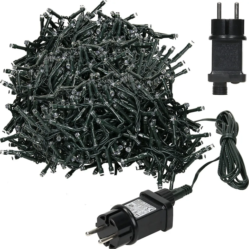 À Noël, les guirlandes lumineuses LED sont incontournables ! Avec leur lumière magique, les guirlandes lumineuses de Noël transforment votre maison en un pays des merveilles décoré pour les fêtes.Grâce aux LED à faible consommation d’énergie, les guirlandes lumineuses de Noël modernes consomment très peu d’électricité et n’entraînent donc pas de frais supplémentaires.Chez ECD Germany, vous trouverez à coup sûr l’éclairage de fête parfait.La belle guirlande lumineuse LED en grappe d’ECD Germany est une merveilleuse décoration de Noël. La lumière colorée est idéale pour la saison froide. La guirlande lumineuse s’installe à merveille sur le mur de la maison, mais la décoration de Noël fait également très bien l’affaire sur le sapin. Ainsi, la guirlande lumineuse convient aussi bien à l’extérieur qu’à l’intérieur. Grâce au câble électrique de 3 m, la guirlande lumineuse est très flexible.Caractéristiques :36m de longueur1800 LEDsPour les arbres jusqu’à 3,6 m de hauteurProtection IP44Câble d’alimentation de 3mPour l’intérieur et l’extérieurDe haute qualitéBelle guirlande lumineuse8 programmes d’éclairage différentsFonction minuterie : 8 heures d’allumage, 16 heures d’extinctionSur la maison ou sur le sapin de Noël8 modes différents1. Combinaison2. Clignotement rapide3. Clignotement séquentiel4. Incandescence lente5. Clignotement lent6. Allumage/extinction7. Scintillement8. Eclairage continuLivraison :1x 1800 LED’s Guirlande lumineuse 36m incl. bloc d’alimentationInformations techniques :Matériau : PVC, ampoules LEDNombre de LED : 1800Couleur de la lumière : multicoloreCourant : 50 Hz, 230 VØ des LED : environ 4,5 mmEspacement des LED : env. 2 cmCâble d’alimentation : env. 3 mLongueur totale : env. 36 mClasse de protection : IP44 (pour l’intérieur et l’extérieur)Couleur du câble : vert foncéminuterie incluse (8 heures de marche – 16 heures d’arrêt)