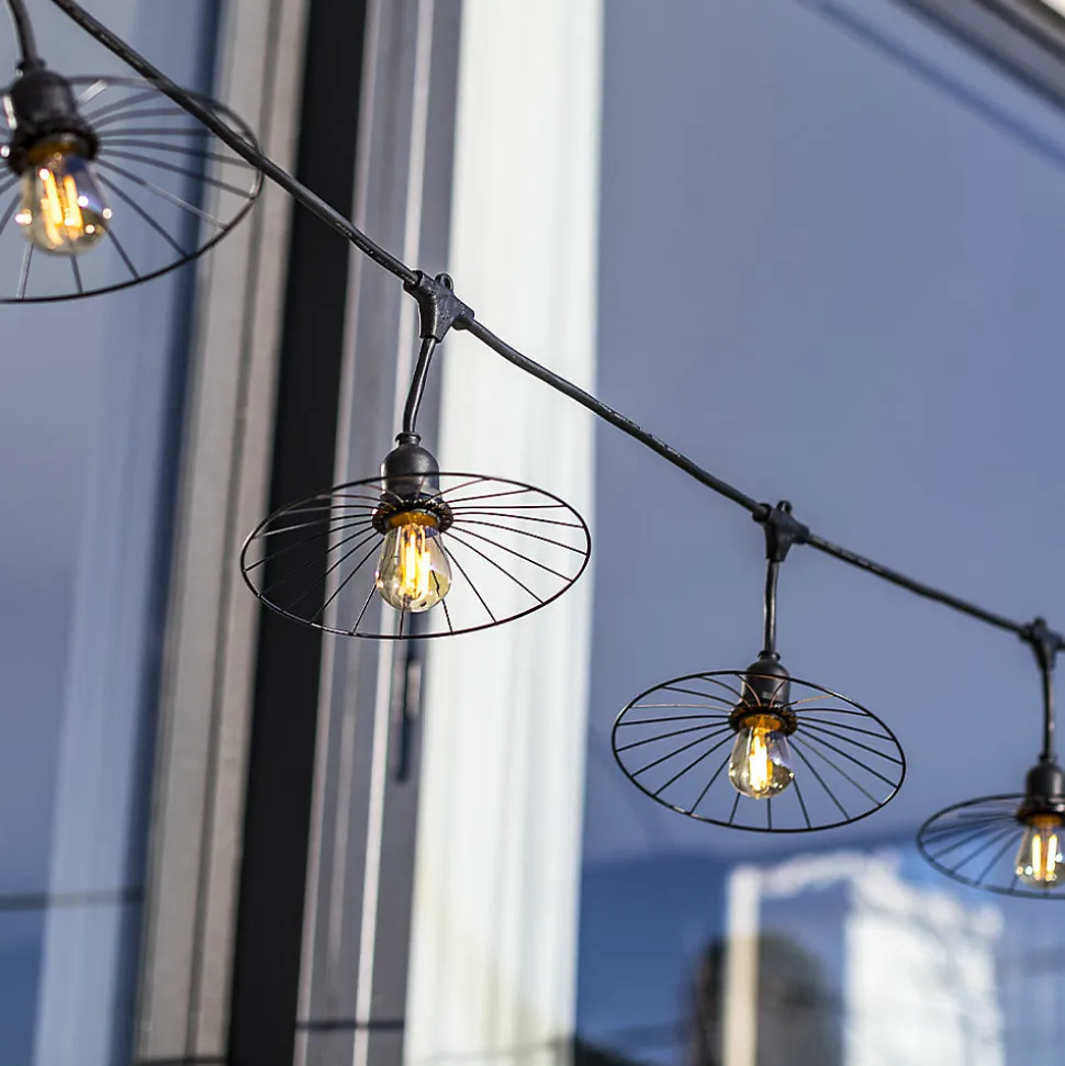 Guirlande lumineuse LED Chic Cage Light Lumisky E27 1000 lm 10W IP64 blanc chaud L.6m rétro structuré noir mat