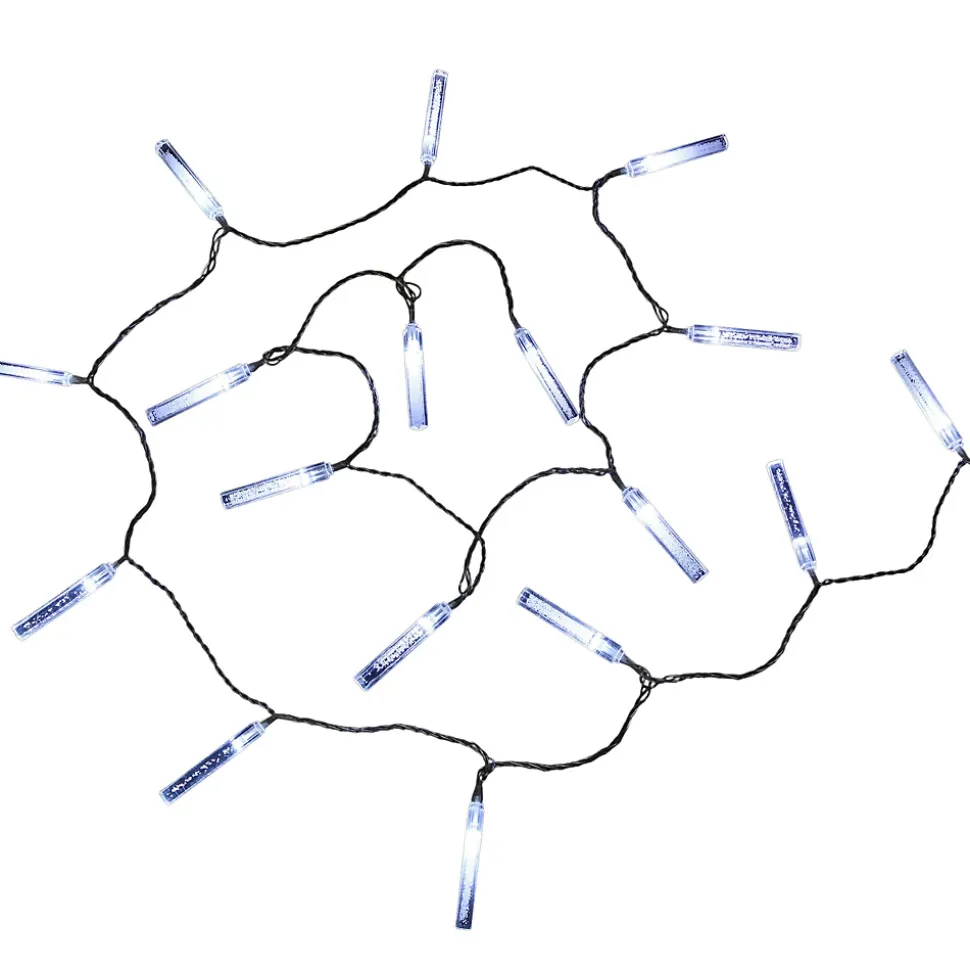 Créez une ambiance givrée et élégante avec cette superbe guirlande lumineuse LED en forme de glaçons. Dotée de 32 glaçons éclairés par des LED blanches, elle diffuse une lumière froide et brillante, parfaite pour sublimer vos décorations de Noël, vitrines ou espaces extérieurs abrités. ✨ Caractéristiques principales 32 glaçons lumineux pour un effet givré réaliste LED blanches pour une lumière éclatante et moderne Transformateur IP44 – 24V, idéal pour une utilisation sécurisée intérieure et extérieure protégée Longueur : 4,6 m, parfaite pour sapins, rambardes, façades et décorations murales Fil noir, discret dans le feuillage ou en extérieur Composition : Plastique & Métal ❄️ Idéale pour