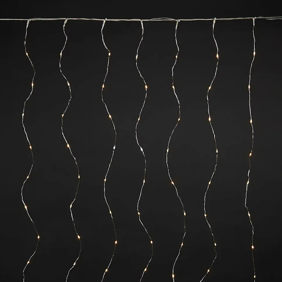 Guirlande lumineuse rideaux 380 LED IP44 6W blanc chaud L.6m câble argent