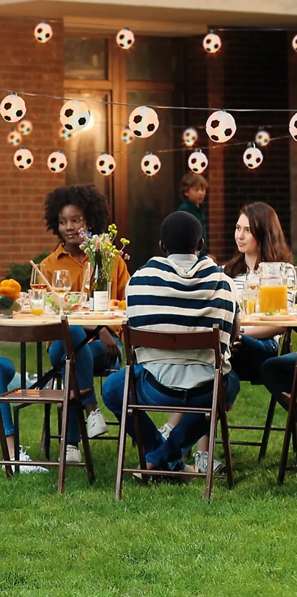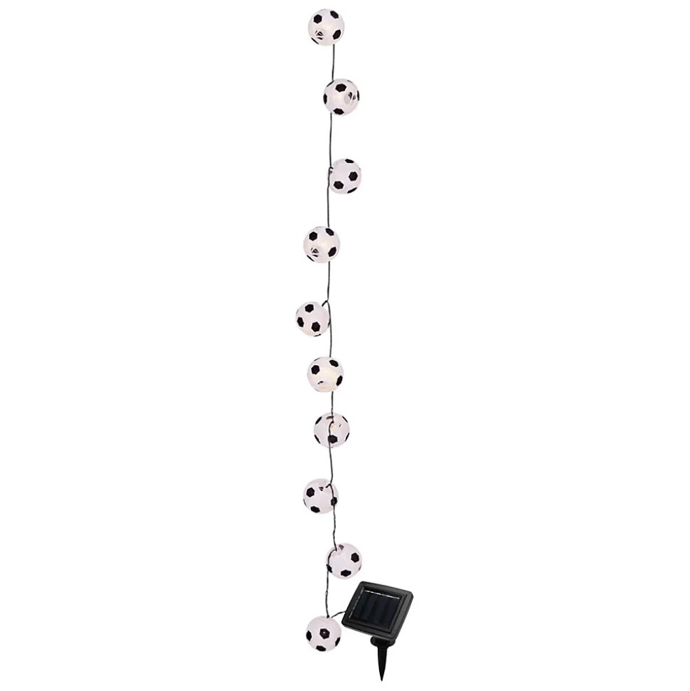 La guirlande lumineuse de la collection FOOTBALL assure un éclairage attrayant dans votre espace extérieur. Les guirlandes lumineuses sont les plus polyvalentes des décorations d’extérieur. Là où elles se trouvent, une ambiance agréable s’installe automatiquement. Cette guirlande lumineuse solaire illumine votre jardin à l’aide d’un panneau solaire qui recharge la batterie pendant la journée et vous rend ainsi indépendant des prises de courant. Cette lampe impressionne par l’association réussie d’un style romantique et de matériaux de haute qualité. Sa forme sphérique claire et son design décoratif s’harmonisent parfaitement, ce qui en fait un véritable point de mire. Grâce à la finition robuste du métal, du plastique et du textile, la guirlande lumineuse devient un véritable objet polyvalent, la couleur noire soulignant son design moderne. Cet article a une dimension de 7,5 cm de large, 7,5 cm de long et 7,5 cm de haut. Cette guirlande lumineuse est équipée de 20 LED de haute qualité qui produisent une lumière confortable et agréable. La puissance totale de la lampe d’extérieur s’élève à 1 watt. L’interrupteur coulissant pratique permet d’allumer et d’éteindre facilement la lampe. Le port USB supplémentaire permet de recharger facilement et rapidement vos appareils. Ce luminaire est équipé d’un astucieux capteur crépusculaire qui assure l’allumage automatique de l’éclairage dans l’obscurité. Grâce à la classe 3 et à l’indice de protection IP44, ce luminaire est parfaitement adapté à une utilisation en extérieur. Dans l’ensemble, les luminaires extérieurs à énergie solaire constituent une solution optimale qui allie durabilité, efficacité et esthétique. Leur installation facile et leurs multiples possibilités d’utilisation en font un choix pratique qui réduit également la consommation d’énergie. L’espace extérieur est ainsi éclairé de manière esthétique.