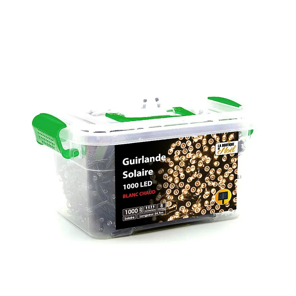 Guirlande solaire à LED multifonctionIlluminez votre jardin toute en faisant des économies grâce à la technologie solaire ! Alimentées par les rayons du soleil, les guirlandes lumineuses à LED permettent d’égayer les espaces intérieurs et extérieurs en créant une ambiance féérique dans le respect de l’environnement.Cette guirlande solaire fonctionne aussi avec des piles standards non fournies (pour ne pas utiliser la fonction solaire).Ces guirlandes solaires LED viendront orner votre façade extérieure ou votre montée d’escalier ce qui ravira les petits comme les grands !Ces guirlandes solaires s’allument automatiquement à la tombée de la nuit et fonctionnent soit en éclairage clignotant soit en éclairage continu. Vous pourrez changer leur mode de fonctionnement en fonction de vos envies.Informations techniquesTypes d’éclairages possibles : éclairage fixeéclairage clignotantFonctionnement de la guirlande solaire : Cette guirlande solaire s’illumine automatiquement à la tombée de la nuit.Espacement entre les LEDs : 1 LED tous les 7 cm environ.Batterie : Ni-mh solaire – 600mAH.Pile : 1 x AA (LR06)- 1,2V (non fournie)Alimentation : la guirlande est alimentée grâce à un panneau solaire avec piquet à planter dans le sol.Étanchéité : la guirlande bénéficie de la norme IP44 protégeant contre les projections d’eau venants de toutes directions et donc adapter à une utilisation en extérieur.