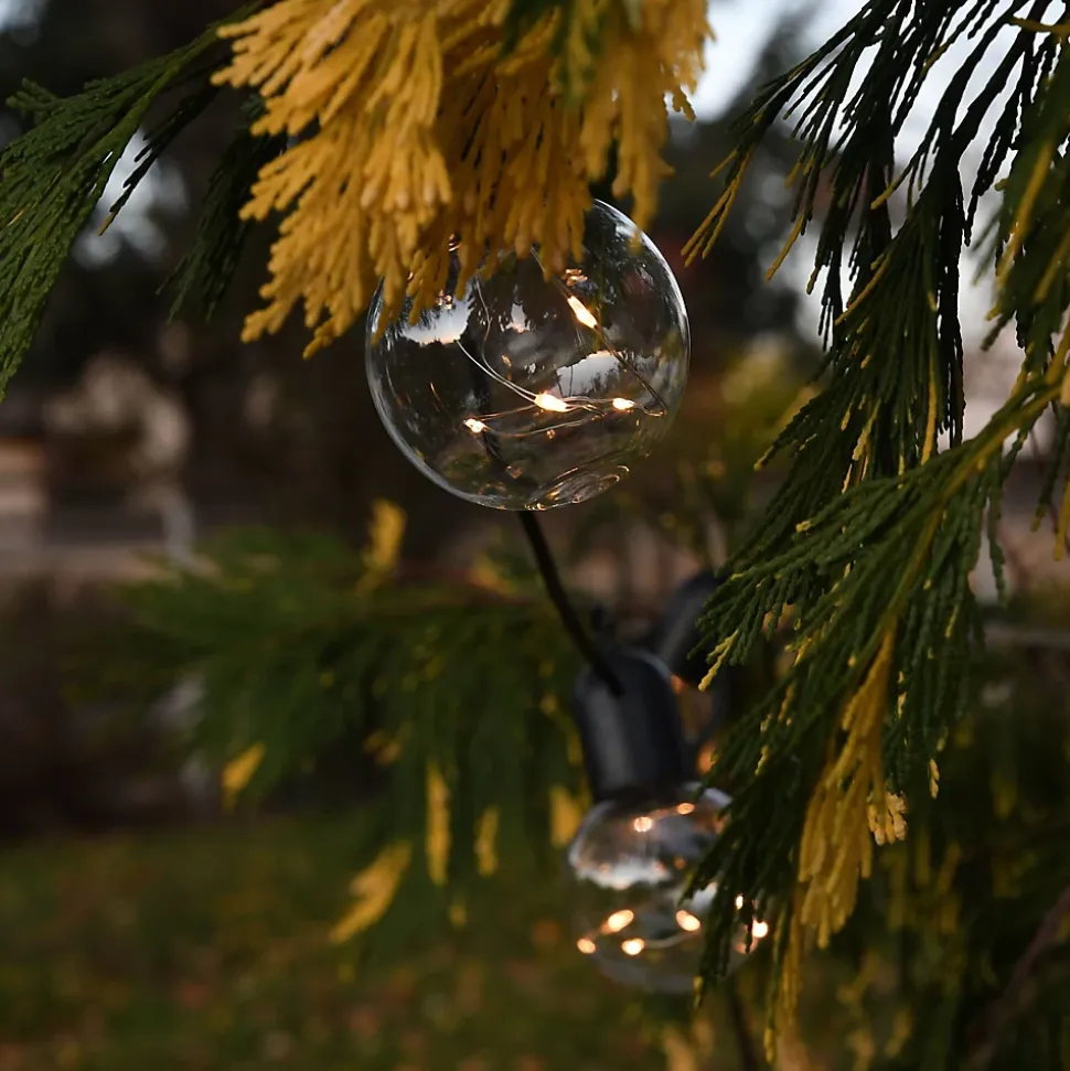 Cette guirlande solaire Boogie pourra faire de votre extérieur un lieu agréable, festif et chaleureux. Vous pourrez profiter pleinement de vos soirées d’été. Son panneau solaire vous assure un maximum de luminosité tout au long de votre soirée.• Couleur de LED : Blanc Chaud• Nb de LED : 100 microLED• Couleur du câble : Câble noir• Animation : Animé• Dimensions : L5,8m• Prolongeable : Non• Lumens : 150 lumens• Alimentation : Solaire batterie Accu 18650 1800mAh 3.7V Li-Ion, incluse• Matière : PVC Souple• Autonomie : 6 heures• Usage : Intérieur/Extérieur• Indice de protection : IP44• Garantie : 2 ansUsage et installation :Cette guirlande pourra faire de votre extérieur un lieu agréable à la fois paisible et festif. Son indice IP44 vous permettra de l’installer à l’extérieur sans problème tout au long de l’année. Il est conseillé de placer le panneau solaire une journée au soleil avant son utilisation.Données techniques et dimensions :La guirlande solaire Boogie mesure 5.8m. Il y a 30cm entre chaque globe et 1.8m entre le panneau solaire et le 1er globe. Pour une installation simple, chaque globe contient un anneau de fixation. Son panneau solaire est déporté et un piquet et une fixation murale sont inclus afin d’adapter votre besoin. Source lumineuse :Cette guirlande solaire est composée de 20 globles transparents comprenant chacun 5 microled, soit un total de 100 microled blanc chaud animées. Son autonomie lumineuse est de 6 heures.