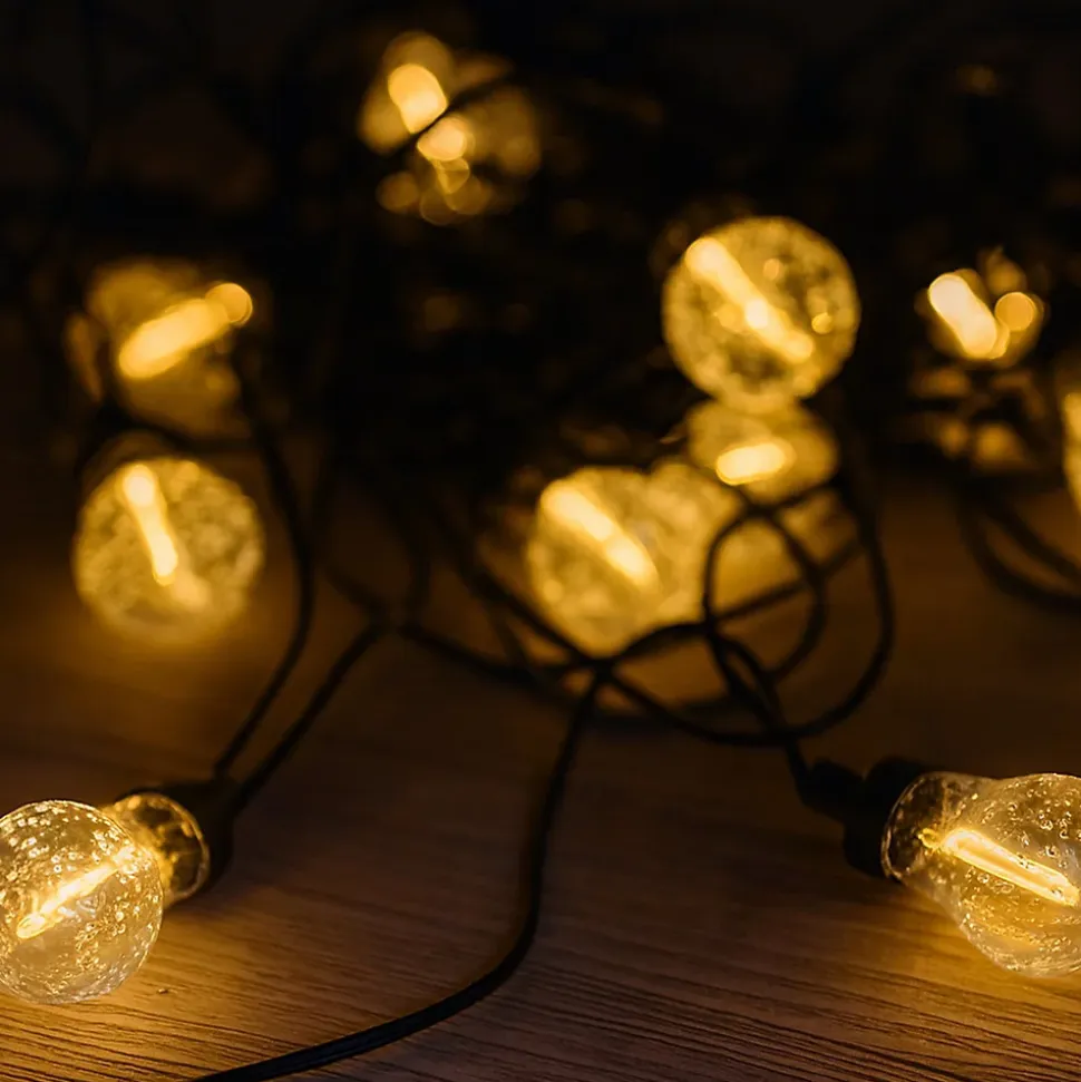 La guirlande solaire Bubble String Light est l’accessoire idéal pour créer un effet scintillant et magique dans votre jardin. Dotée de 25 ampoules LED blanc chaud, elle se distingue par ses mini-bulles internes qui amplifient la lumière pour un rendu festif unique. Sa longueur de 20 mètrès permet de couvrir de vastes zones, comme des clôtures ou de grands arbres. L’éclairage est totalement ajustable grâce à son panneau solaire offrant 4 niveaux d’intensité (de 25% à 100%). Avec un flux total de 50 lumens, elle crée une atmosphère douce et féerique pour vos soirées en extérieur. Le panneau intègre un voyant de batterie pratique pour suivre l’état de charge en temps réel. Profitez d’une installation sans fil, durable et robuste. Cette guirlande combine performance et esthétique pour transformer durablement votre terrasse en un lieu enchanteur. C’est la solution parfaite pour un éclairage extérieur scintillant, durable et facile à moduler selon vos envies.