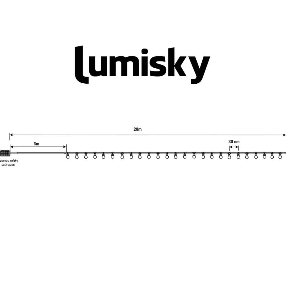La Guirlande lumineuse solaire besty light est la solution idéale pour créer une atmosphère chaleureuse et festive spectaculaire. D’Une Longueur Totale De 20 mètrès, elle est dotée de 25 ampoules LED blanc chaud. Elle Est Parfaite pour habiller vos arbres, clôtures ou pour une installation suspendue au-dessus d’une terrasse. Sa Grande Longueur lui permet de couvrir de vastes zones. L’Éclairage Est Totalement dimmable : le panneau solaire est équipé d’un bouton de changement d’intensité offrant 4 niveaux de luminosité (25%, 50%, 75%, 100% du total de 50 lumens). Vous Contrôlez ainsi l’atmosphère d’un simple geste. Elle Diffuse un éclairage d’ambiance total de 50 lumens, idéal pour les soirées en extérieur. Le Panneau Solaire Intègre un voyant de niveau de batterie très pratique pour connaître l’état de charge de la guirlande. Vous Profitez d’une installation sans fil et durable. La Besty Light est idéale pour créer un éclairage d’ambiance extérieur durable.