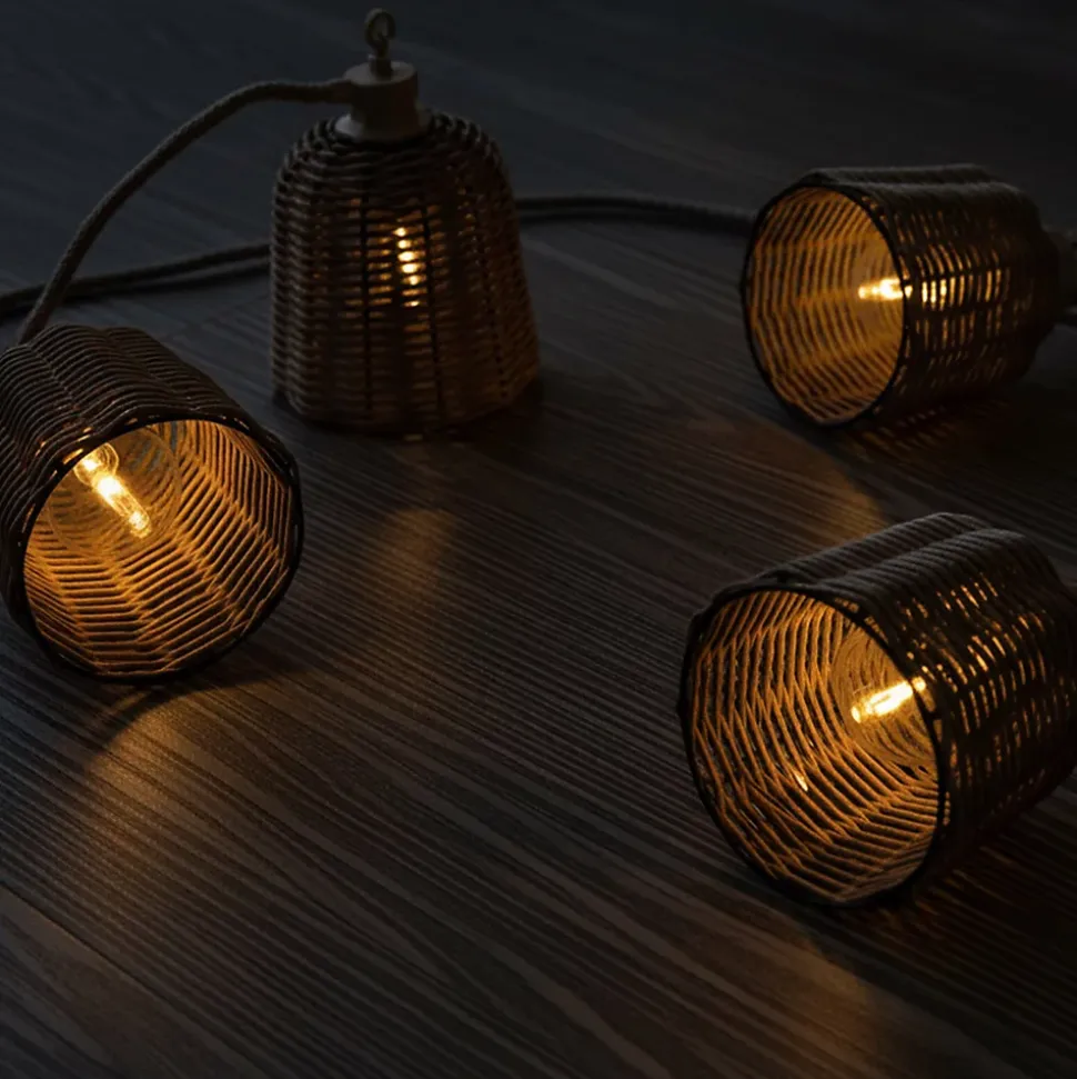 La guirlande Formentera Big Hybrid s’impose comme une pièce maîtrèsse grâce à ses 10 abat-jours imposants en polyrotin, apportant chaleur et élégance. Ce modèle de 8 mètrès utilise une technologie hybride flexible : une alimentation solaire durable ou un branchement secteur pour un éclairage continu. Ses 10 ampoules LED remplaçables (2700K) diffusent une lumière blanc chaud sophistiquée, idéale pour vos aménagements intérieurs et extérieurs. Certifiée IP44, elle résiste aux intempéries et dispose d’un panneau de contrôle intuitif avec indicateur de batterie et 4 modes d’intensité réglables. Modulable, elle permet de raccorder jusqu’à trois unités pour sublimer de vastes surfaces comme des jardins ou des pergolas. Alliant design robuste et fonctionnalités modernes, cette guirlande est la solution parfaite pour ajuster l’ambiance lumineuse de vos soirées d’été. Elle transforme chaque espace avec une grande élégance et une simplicité d’utilisation optimale.