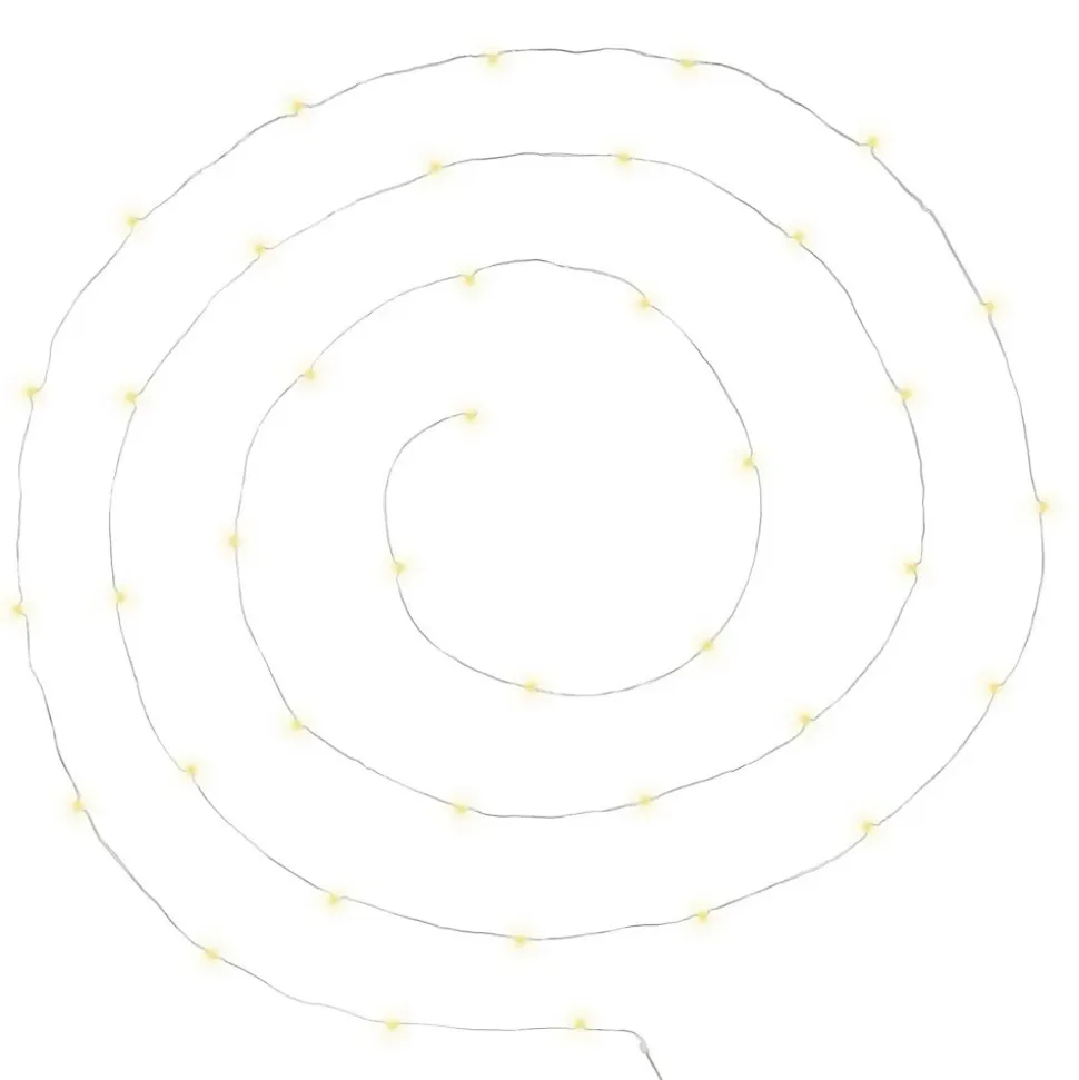 Laissez-vous tenter par cette guirlande 40 MicroLED Chrome Blanc chaud L370 d’Atmosphera.Cette guirlande lumineuse se compose d’un fil en cuivre de L. 370 cm et de 40 microLED en PVC.Vous pourrez profiter de son fil argenté, avec sa lumière LED blanc chaud une fois la guirlande microLED disposée dans sous la cloche en verre sur socle en bois H29,5 par exemple.Elle se décline en version plus courte avec la guirlande 20 MicroLED Chrome Blanc chaud L190.