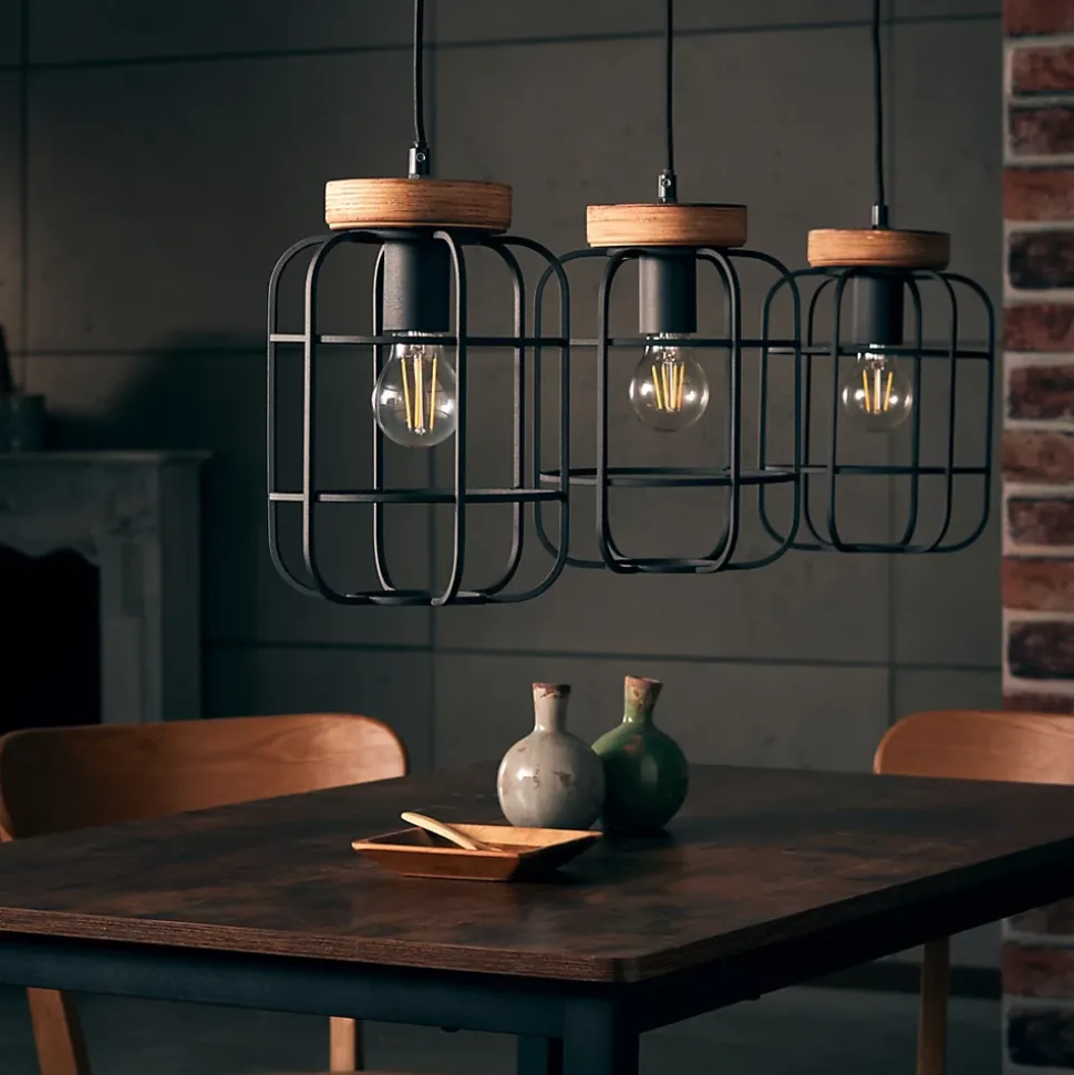 La suspension GWEN bois patiné/noir mat est un luminaire élégant qui associe métal et bois pour un rendu industriel et chaleureux. Elle est équipée de trois douilles E27, compatibles avec des ampoules LED ou classiques jusqu’à 40W. Son design sobre et sa finition bois patiné et noir mat lui permettent de s’intégrer parfaitement dans des intérieurs modernes ou vintage. Les suspensions sont le point central de chaque pièce. Leur lumière est diffusée directement vers le bas, ce qui les rend particulièrement adaptés comme éclairage de table à manger. Le design naturel est réalisé grâce à l’utilisation du matériau. Le bois provient de l’exploitation forestière durable et est certifié Forest Stewardship Council. Cette certification garantit que les forêts certifiées respectent des critères environnements, sociaux et économiques. L’origine du matériau peut être suivie de la forêt jusqu’à la livraison. Une grande importance est accordée à la protection de l’environnement, à la préservation de la biodiversité et à des conditions de travail sûres. Les ampoules ne sont pas incluses. Des ampoules LED économiques peuvent également être utilisées. En utilisant des ampoules spécifiquement adaptées, le luminaire est également dimmable. Tout le matériel d’installation nécessaire est inclus dans la livraison.