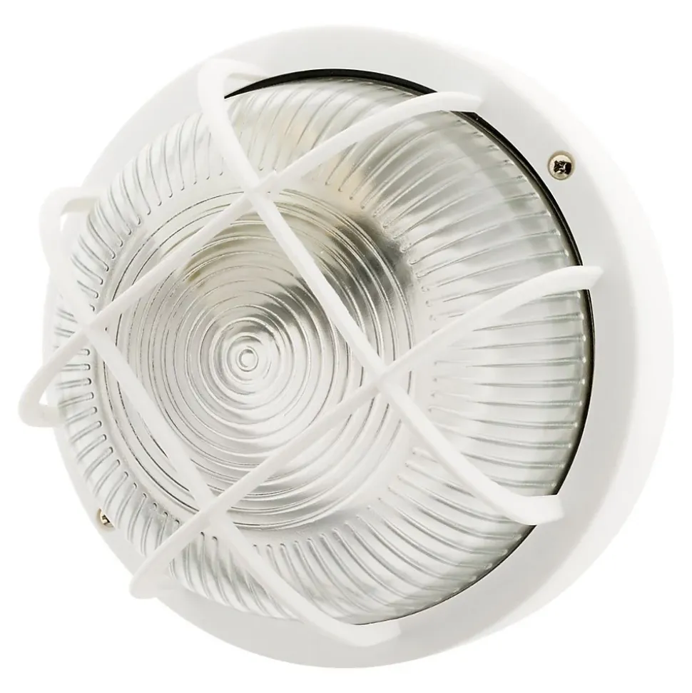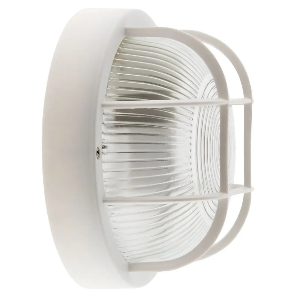 Hublot rond en finition blanche monté sur socle en plastique haute résistance et vasque en verre haute résistance à la chaleur (650°). Livré avec grille de protection. Caractéristiques : Tension 220V – 240V – 50Hz – Classe II Puissance max 60W De qualité professionnelle, ce type de hublot s’installe facilement pour éclairer un local extérieur, une cuisine d’été, votre garage, votre entrée ou votre jardin durant toute l’année Existe en Forme : Ovale14W (3545411410408), Ovale8W (3545411410385), Rond100W (3545411410071), Rond60W (3545411410088)