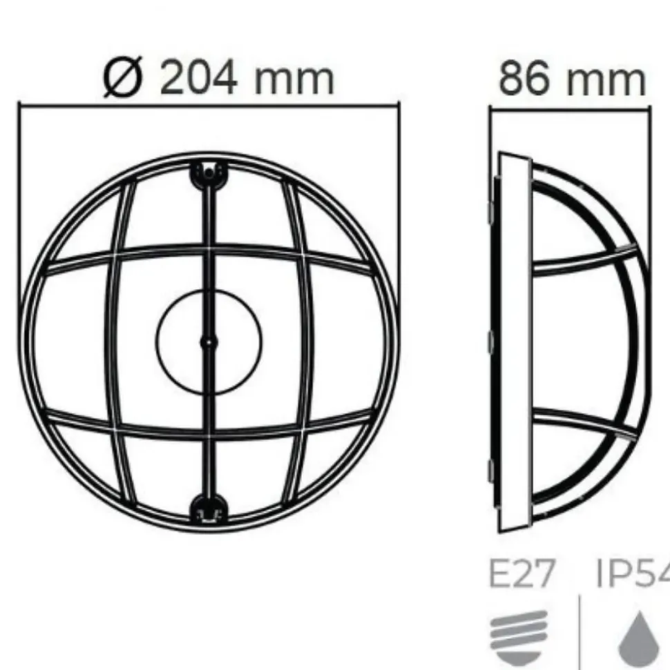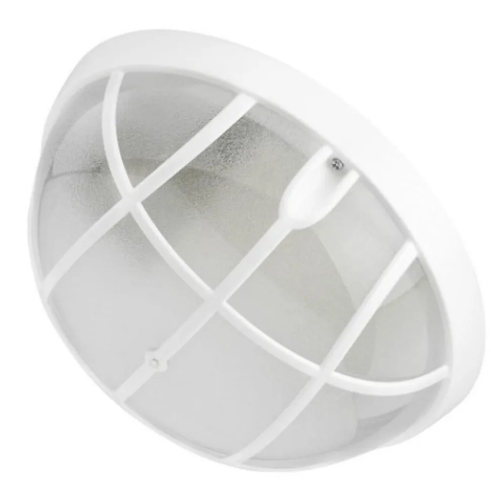 Ce hublot rond blanc 100W (Eq. 20W FLC – 12W LED) IP54 E27 Diam. 204mm vous séduira par sa belle esthétique et vous rassurera par sa grande résistance (antichoc). Il possède en outre un corps en polypropylène et un diffuseur en polycarbonate. L’indice de protection IP54 assure que le produit est : Protégé contre les dépôts de poussière Protégé Protection contre les éclaboussements et les projections d’eau. Les produits dotés d’un indice de protection IP54 sont destinés à une installation intérieur ou extérieur protégée, sous abri. Il est compatible avec les ampoules basses consommations d’énergie fluocompactes et LED de classe énergétique A++ à C. Sa puissance maximum de 100W équivaut à une ampoule FLC de 20W et LED de 12W. Produit conforme à la norme CE et à la directive RoHS.