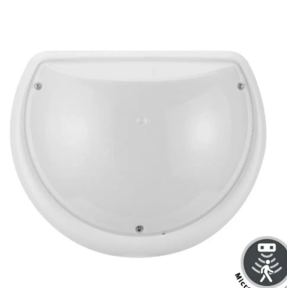 Ce hublot rond blanc à LED 9W (Eq. 72W) IP54 Diam. 250mm Capteur hyper fréquence est en polycarbonate avec un diffuseur opaque. Sa technologie LED offre un éclairage homogène et sans éblouissement. Son capteur hyper fréquence détecte tout mouvement à 360° sur un rayon de 8 mètres. Cet hublot ne possède pas d’ampoule mais des LEDs intégrées, donc pas de maintenance car pas d’ampoules à remplacer. L’indice de protection IP54 assure que le produit est : Protégé contre les dépôts de poussière Protégé Protection contre les éclaboussements et les projections d’eau. Les produits dotés d’un indice de protection IP54 sont destinés à une installation intérieur ou extérieur protégée, sous abri. Sa technologie LED et sa très longue durée de vie permettent de réelles économies d’énergie. Produit conforme à la norme CE et à la directive RoHS.