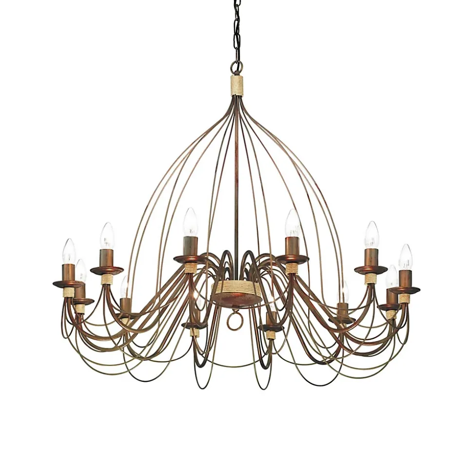 Ideal Lux Corte – Lustre à 12 ampoules au fini brun rouille, E14Finition: Brun rouille | Matériel: Métal | Indice de protection IP: IP20 | Hauteur (cm): 110 | Diamètre (cm): 95 | Chute maximale (cm): 190 | Nombre de lumières: 12 | Type de lampe: E14 | Dimmable: Oui | Puissance (max): 40